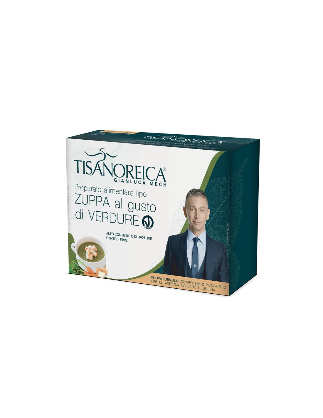 Ingredientes:Proteína de calabaza (31%), proteína de guisante (31%), proteína de arroz (15%), aromas naturales, Activador Tisanoreica® (fibra de acacia, fruta de papaya, zumo de piña liofilizado, flor de malva, fruta de anís estrellado, fruta de hinojo , hoja de alcachofa, hoja de diente de león, mezcla de hierbas aromáticas) (7,4%), sal, verduras (cebolla 0,5%, zanahoria 0,4%), jugo concentrado de acerola (0,8%), especias y hierbas (cúrcuma, perejil, ajo), espesante : goma xantana, L-leucina (5%), jugo de aguacate (0,3%).Valor nutricional por 100 gramos: