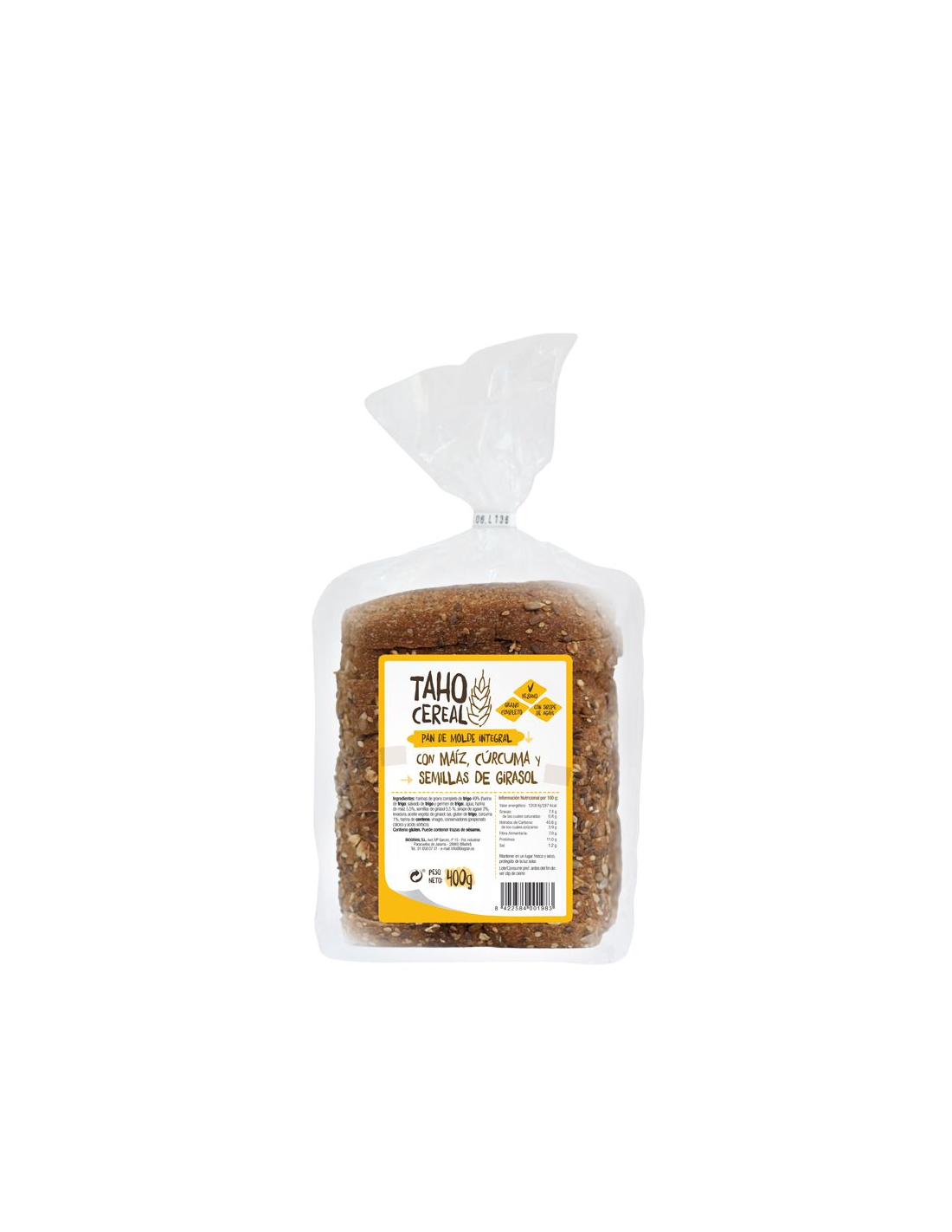 TAHO CEREALCaracterísticas y Beneficios del Pan De Molde Integral Con Maíz, Cúrcuma Y Pipas De Girasol, 400 G de Taho Cereal