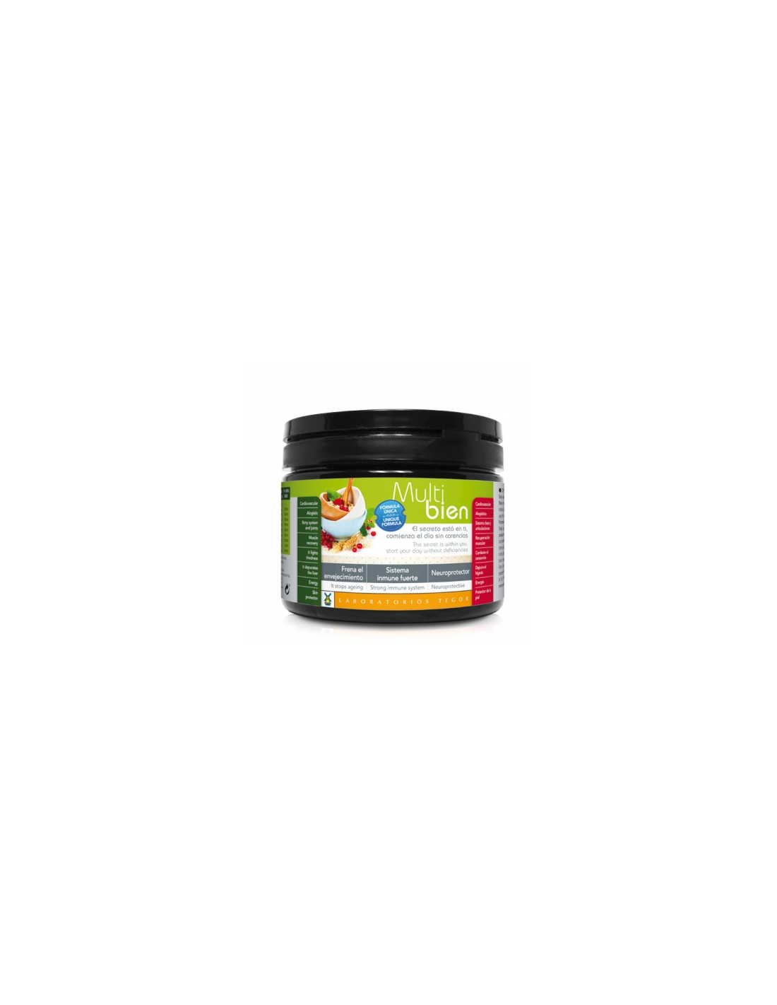 Multibien 200 Gr. de Tegor es un suplemento diseñado para personas que buscan apoyar su bienestar diario mediante una fórmula equilibrada. Su composición está pensada para integrarse fácilmente en rutinas de cuidado personal, aportando nutrientes clave para el mantenimiento general.