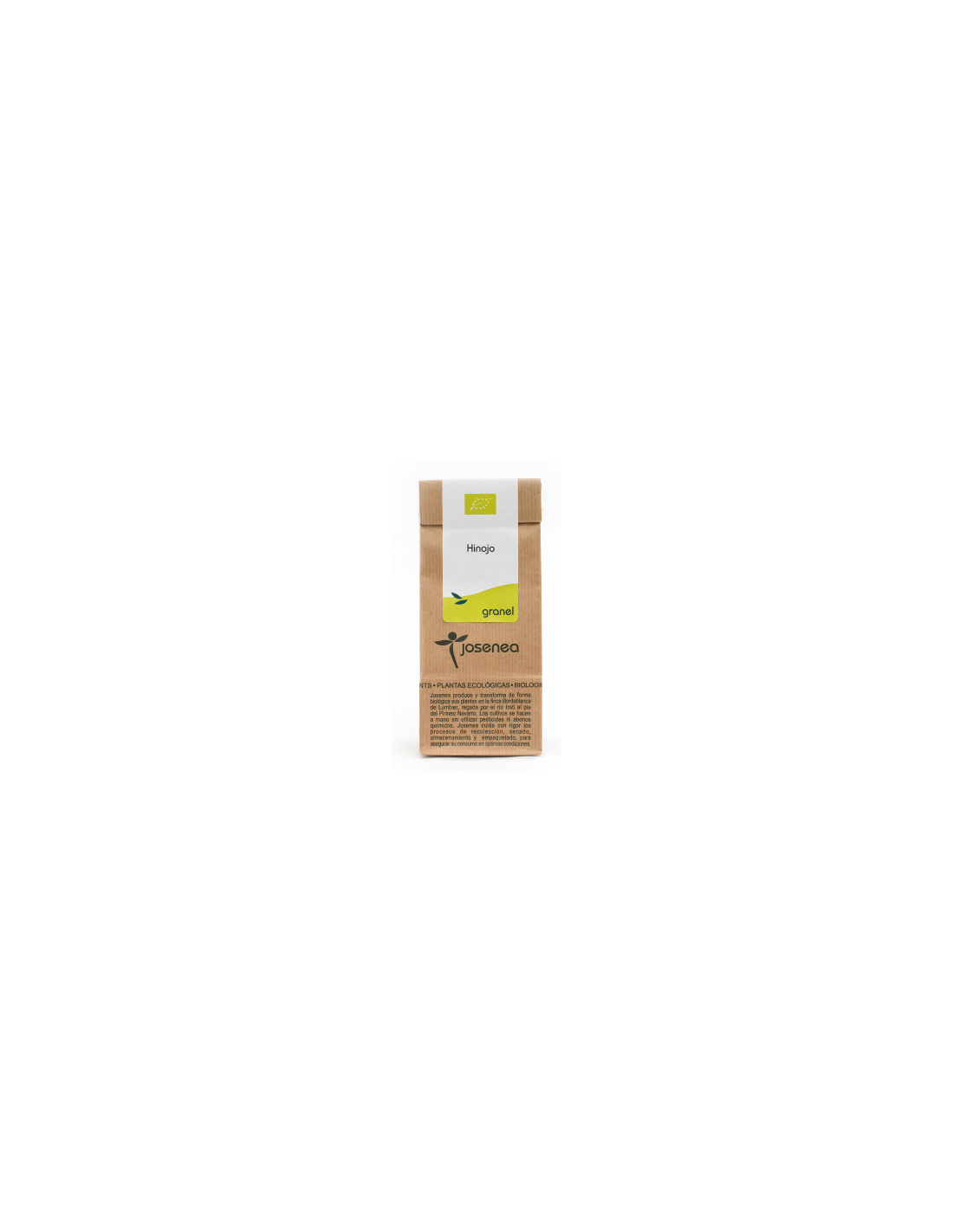 El hinojo de Josenea se presenta en una bolsa de 50 gramos elaborada con materiales que contribuyen a conservar sus propiedades naturales. Su cultivo orgánico responde a prácticas sostenibles, lo que lo hace adecuado para quienes valoran productos respetuosos con el medio ambiente.