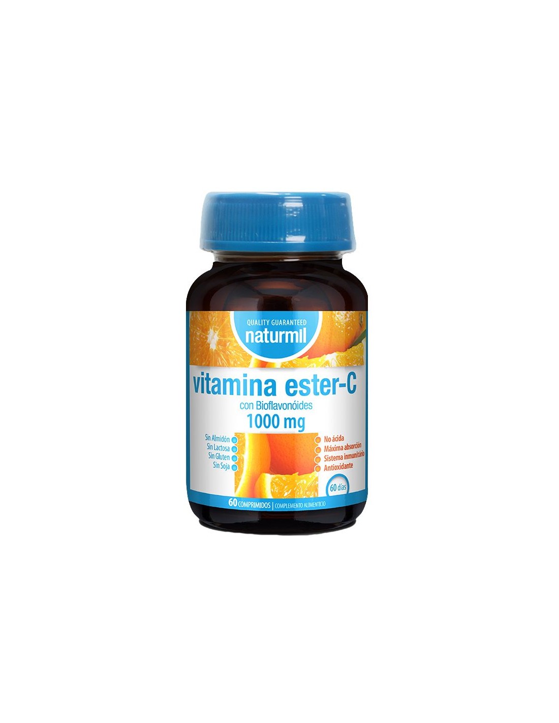 Ingredientes:L-ascorbato cálcico (C Ester), agente de carga: celulosa microcristalina, bioflavonoides (extracto de naranja), antiaglomerantes: magnesio estearato, dióxido de silicio.Modo de empleo:Tomar 1 comprimido antes del desayuno y 1 comprimido antes de la cena.Presentación:Envase de 60 comprimidos.Recomendaciones y advertencias:No contiene gluten ni lactosa.