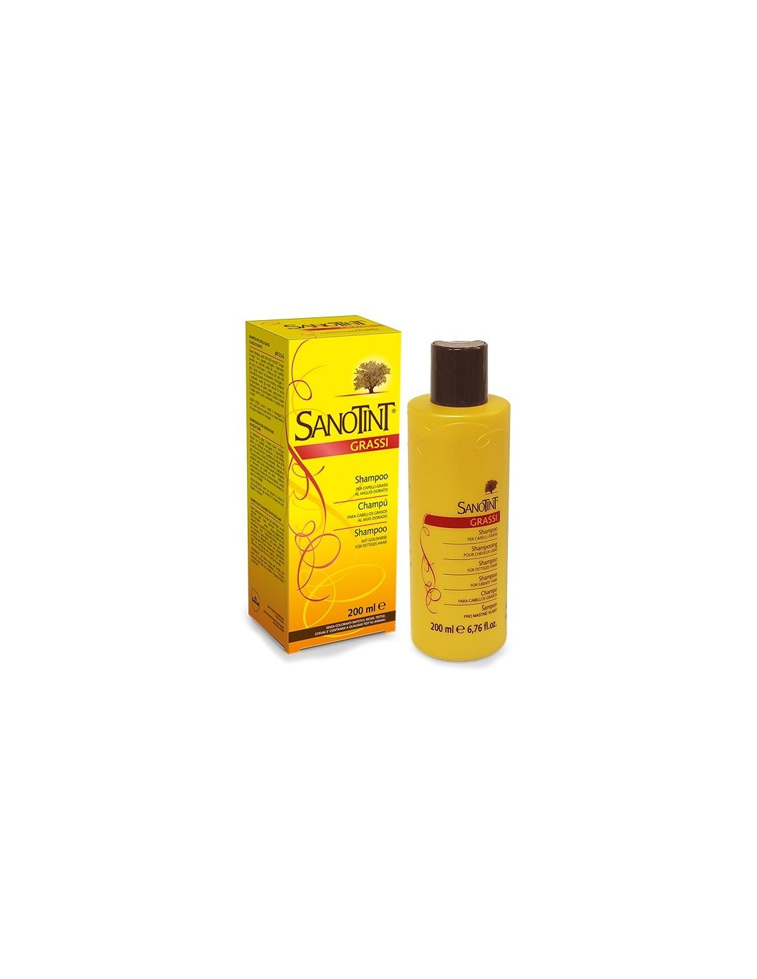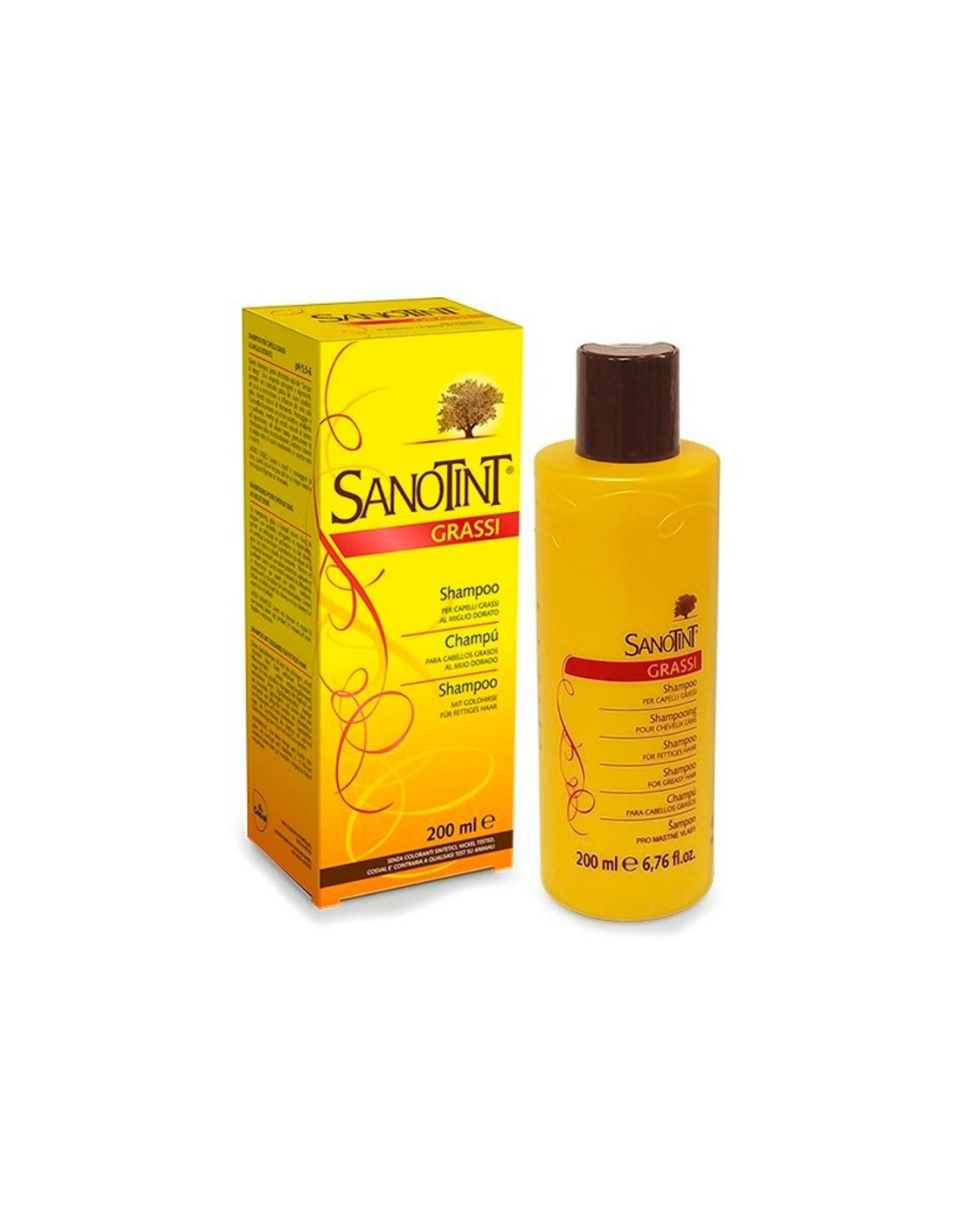 Champú Cabello Graso de Sanotint gracias a los extractos naturales de sangre de drago, con propiedades astringentes y regeneradoras, este champú consigue una profunda limpieza del cuero cabelludo y ejerce una acción normalizadora sobre la producción de sebo en la piel. Los extractos naturales de hamamelis, llantén y manzanilla poseen una acción protectora, emoliente y purificadora, mientras que los extractos naturales de hipérico y castaño de Indias, con propiedades tónicas, estimulan la microcirculación. El extracto natural de mijo nutre el cabello y le proporciona un aspecto sano y brillante.Champú Cabello Graso de Sanotint es un producto se elabora con extracto de sangre de drago, hamamelis, llantén, manzanilla, hipérico, castaño de Indias y mijo dorado. pH 5.5-6.Ingredientes (INCI):Aqua, Sodium Laureth Sulfate, Coco-Glucoside, Cocamidopropyl Betaine, Sodium Chloride, Polyquaternium-7, Lysine Carboxymethyl Cysteinate, Lysine Thiazolidine Carboxylate, Sodium Usnate, Propylene Glycol, Glyceryl Oleate, Isopropyl Stearate, Calcium Pantothenate, Biotin, Clycerin, Lactic Acid, Panicum Miliaceum Seed Extract, Croton Lechleri Resin Extract, Plantago Major Leaf Extract, Aesculus Hippocastanum Seed Extract, Hypericum Perforatum Extract, Chamomilla Recutita Flower Extract, Hamamelis Virginiana Leaf Extract, Lactuca Virosa Leaf Extract, Equisetum Arvense Leaf Extract, Parfum, Phenoxyethanol, Caprylyl Glycol, Sorbic Acid, Benzyl Benzoate, Limonene.Modo de empleo:Aplicar sobre el cabello mojado masajeándolo suavemente, dejar actuar el champú unos minutos y enjuagar con abundante agua.Presentación:Envase de 200 ml.Recomendaciones y advertencias:No contiene parabenos, parafina, alcohol, colorantes de origen sintético, OGM, metales añadidos, derivados de origen animal, dermatológicamente comprobado, níquel probado.