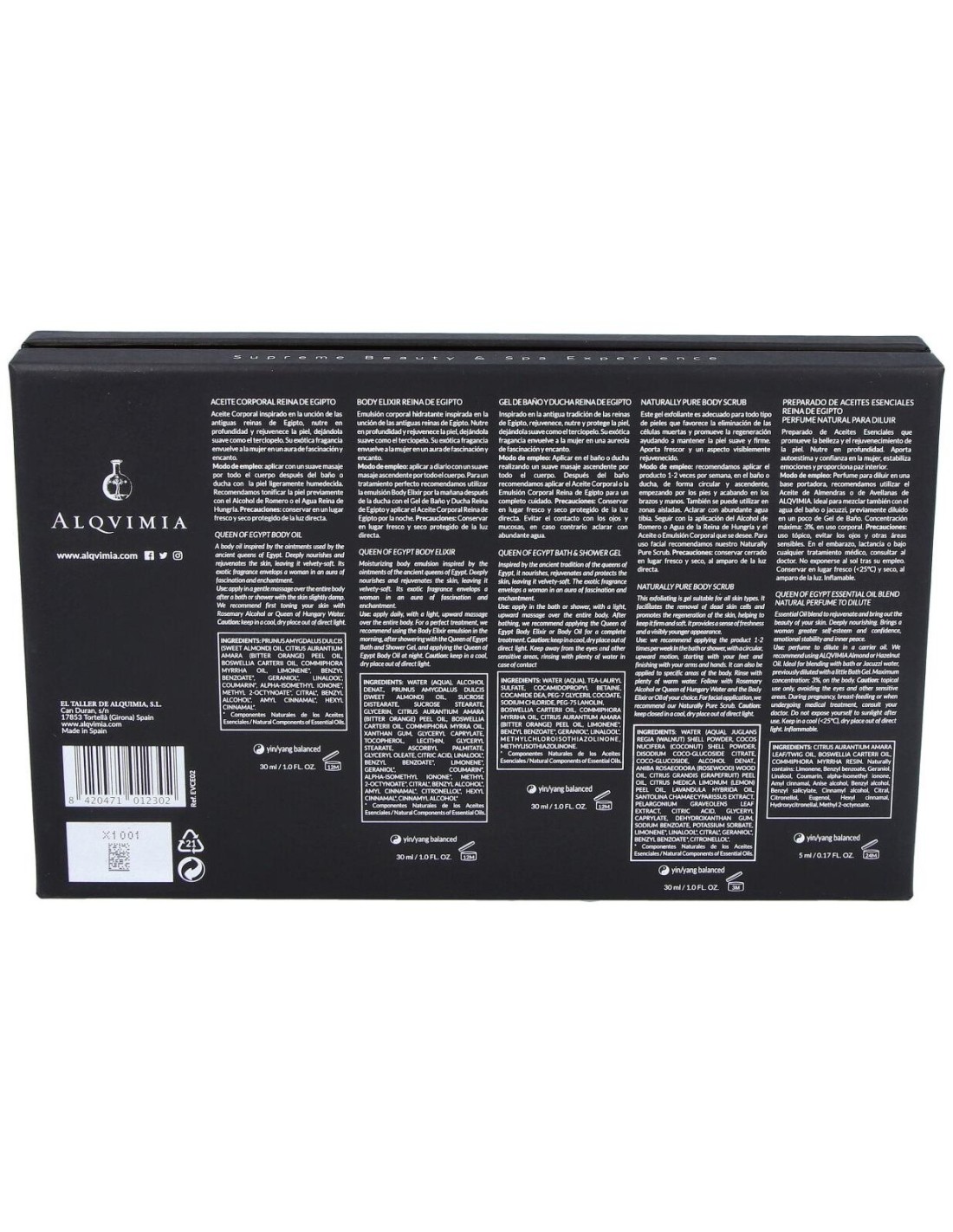 El kit contiene:1 Aceite corporal Reina de Egipto 30 ml1 Body Elixir Reina de Egipto 30 ml1 Naturally Pure Body Scrub 30 ml1 Gel de Baño y ducha Reina de Egipto 30ml1 Aceite Esencial Reina de Egipto 5 ml5 tiras olfativas El kit contiene:1 Aceite corporal Reina de Egipto 30 ml1 Body Elixir Reina de Egipto 30 ml1 Naturally Pure Body Scrub 30 ml1 Gel de Baño y ducha Reina de Egipto 30ml1 Aceite Esencial Reina de Egipto 5 ml5 tiras olfativasPrecauciones:Durante el embarazo, lactancia o bajo cualq..