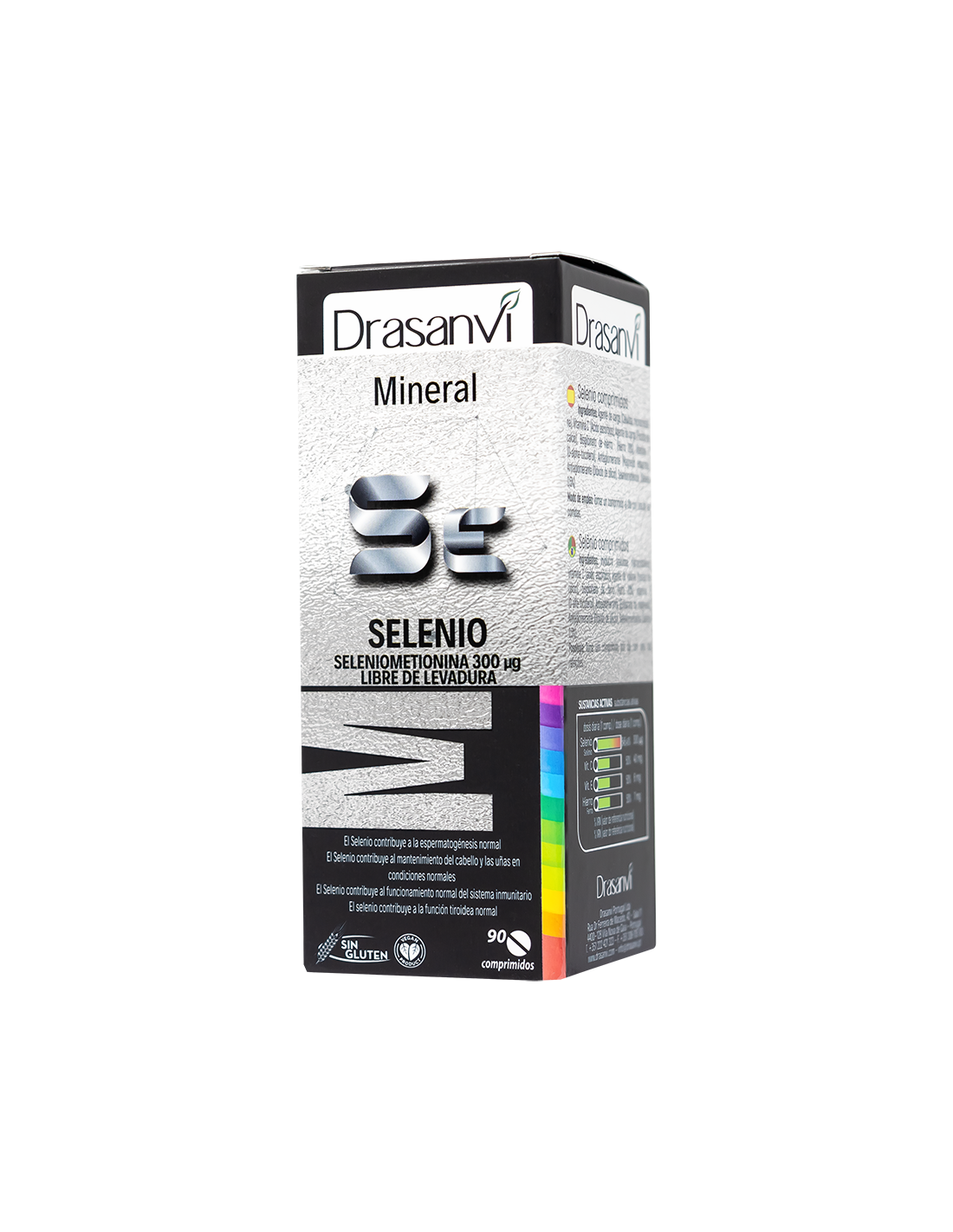 El Selenio es un mineral esencial para muchas de las funciones de nuestro organismo. Aunque esta presente en todo el cuerpo es más abundante en riñones, higado, bazo, pancreas y testículos. En Drasanvi, hemos seleccionado la fuente de Seleniometionina, una fuente orgánica con mayor tasa de asimilacion que otras fuentes inorgánicas de Selenio. Además de ha incorporado a la formula el hierro (Añadido en forma de bisglicinato de hierro), Vitamina C y Vitamina E. Contribuye a la espermatogénesis normal, al mantenimiento del cabello y las uñas en condiciones normales, del sistema inmunitario y a la función tiroidea normal. Composición activa por comprimido: