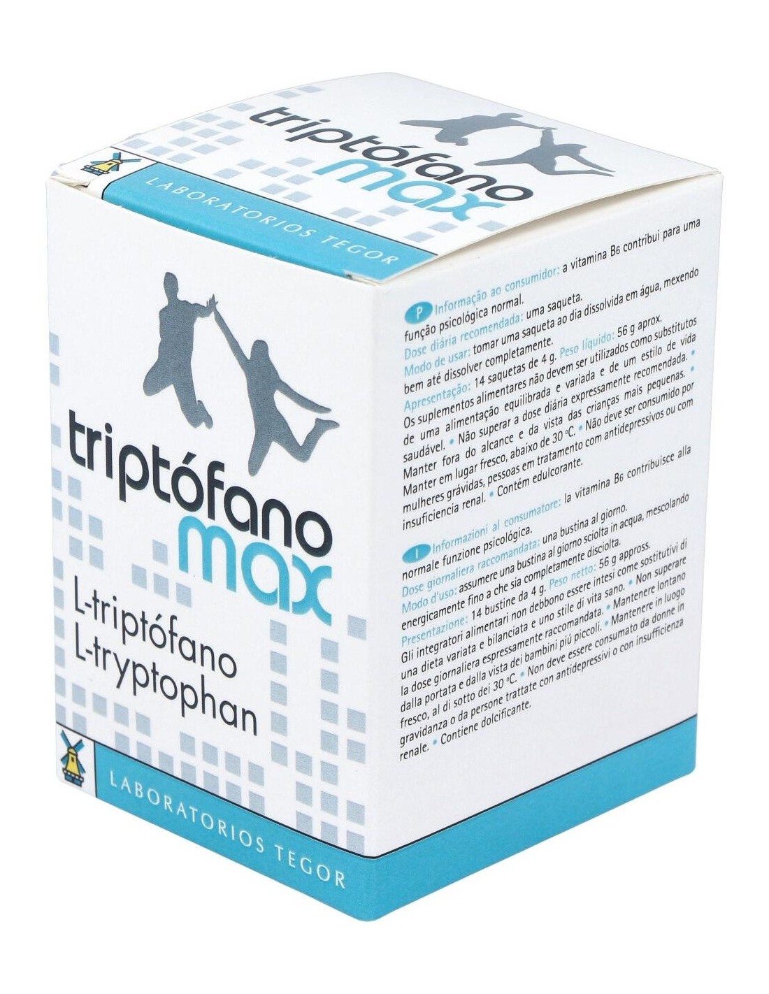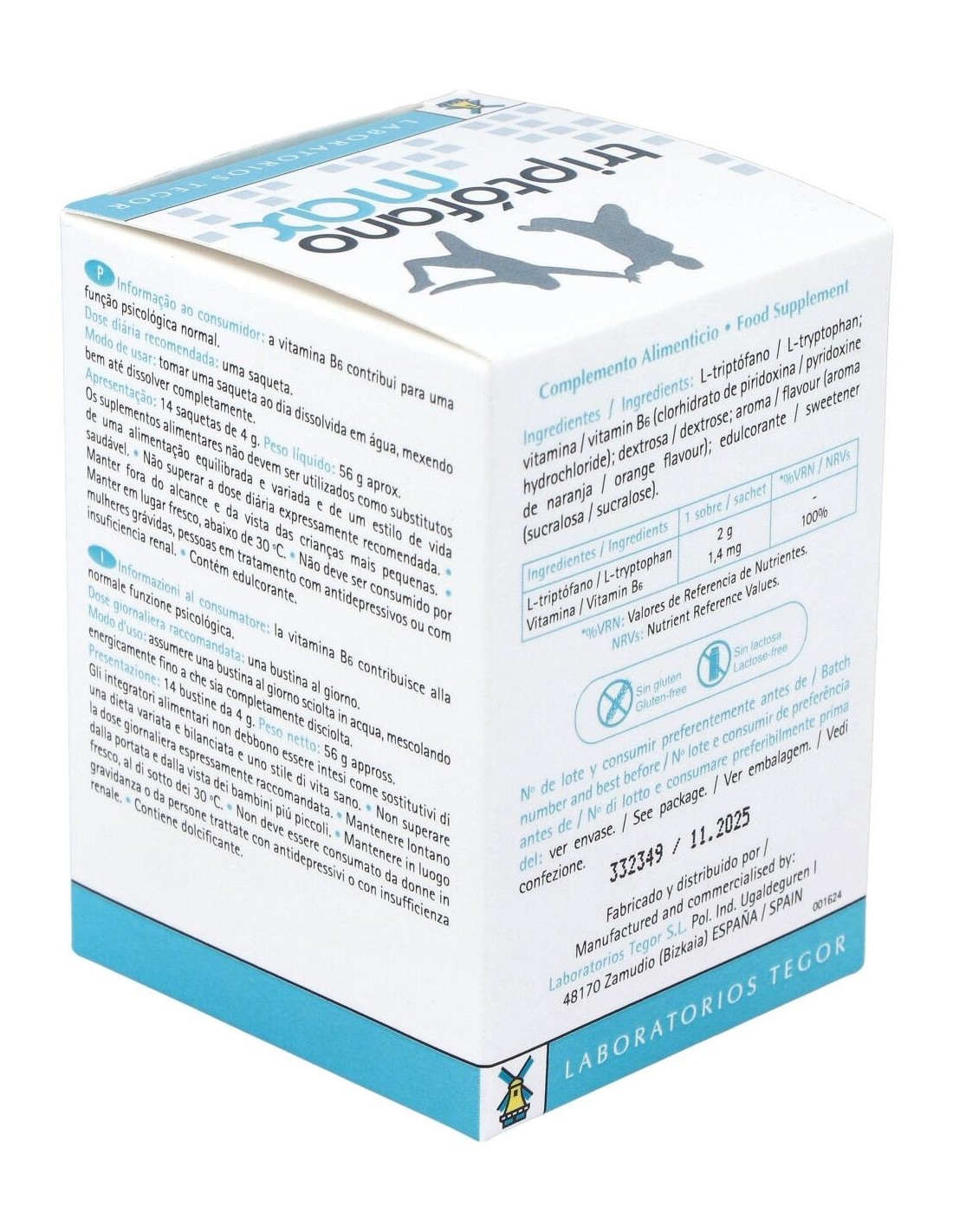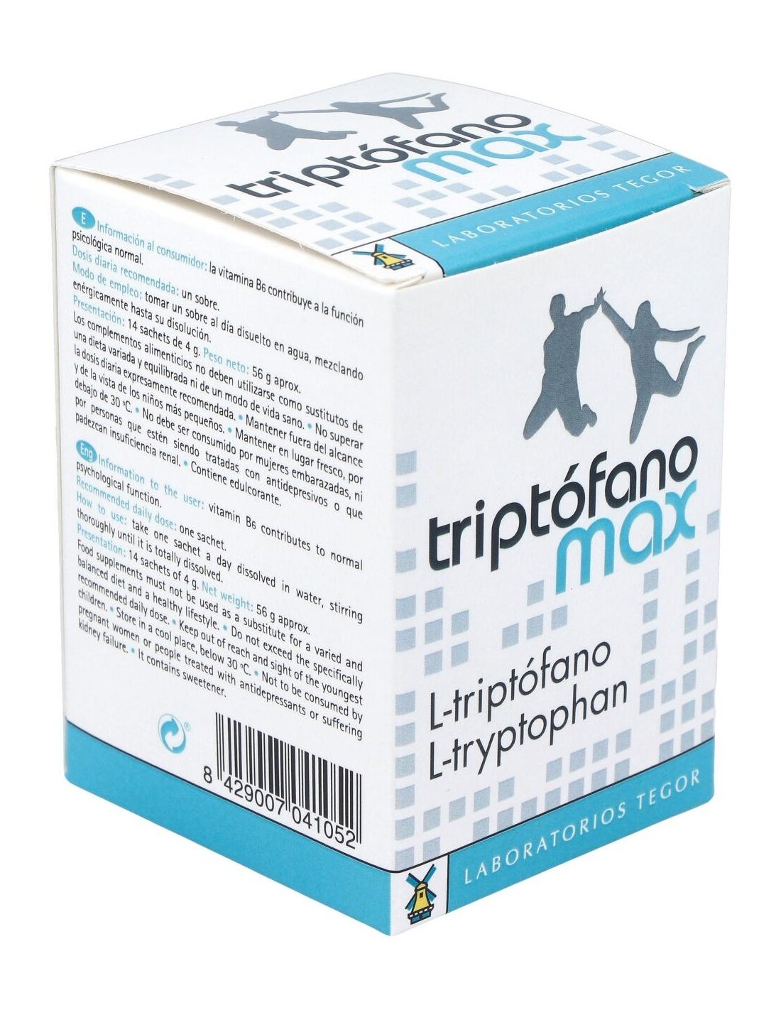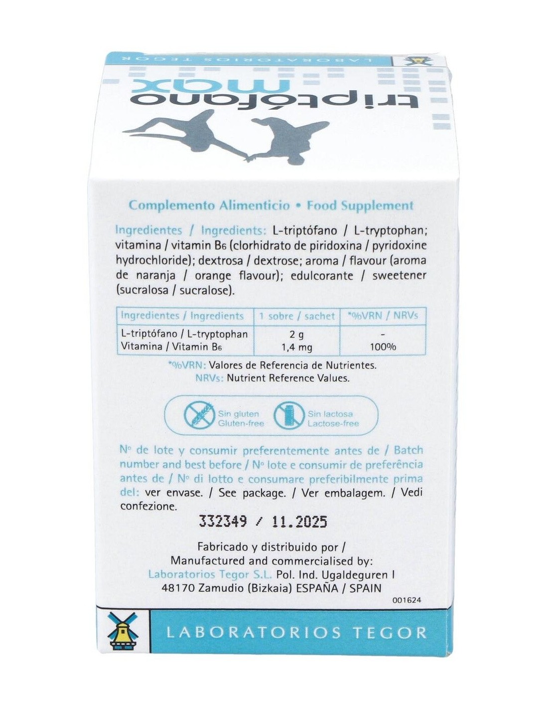 El Triptofano Max 14 Sobres de Tegor es un suplemento dirigido a adultos que buscan apoyar el bienestar emocional y la relajación, formulado con ingredientes que contribuyen a mantener el equilibrio natural del organismo.