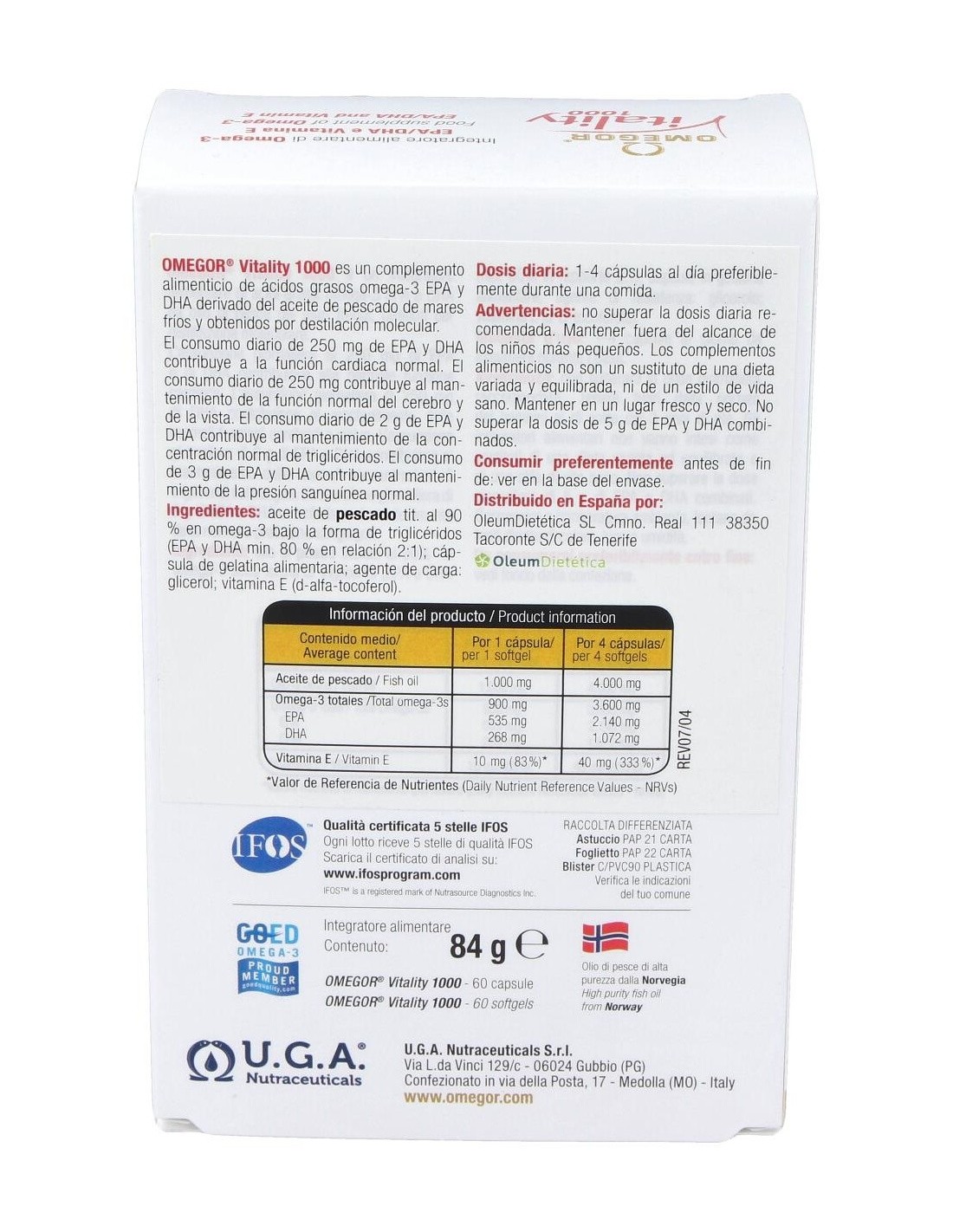 Omegor Vitality 1000 60Perlas de Uga Nutraceuticals