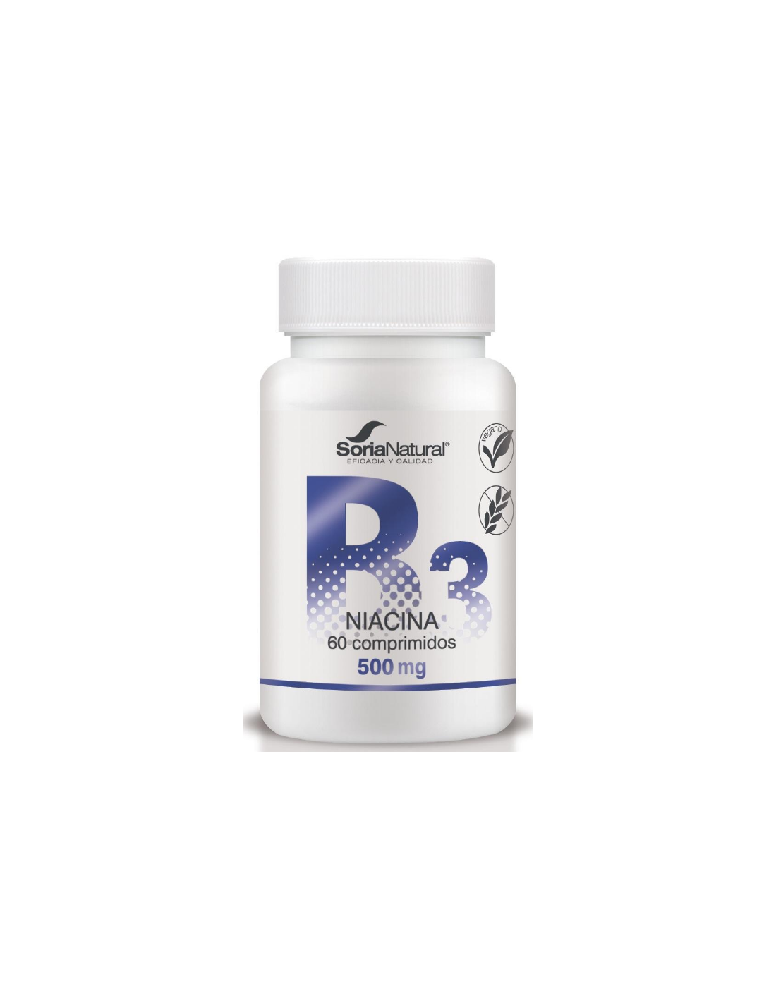SORIA NATURALLa Niacina contribuye al funcionamiento normal del sistema nervioso. Comprimidos de liberación sostenida, de elevada absorción y aprovechamiento. Producto vegano.