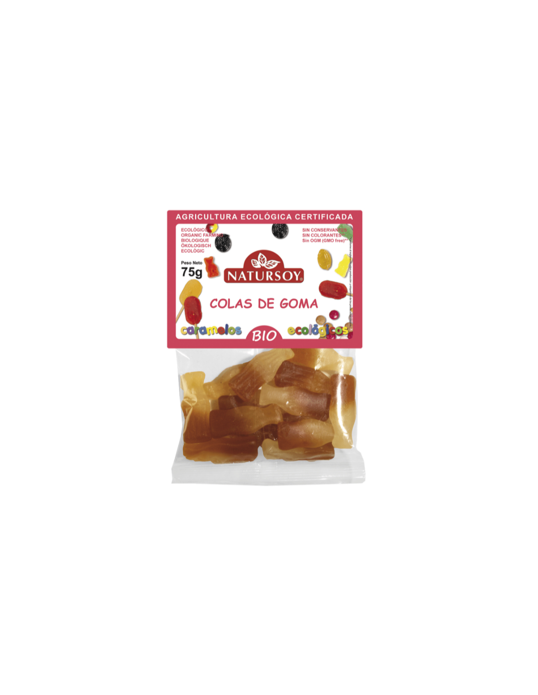 Colas de Goma de Natursoy son gomas naturales, no contienen colorantes ni conservantes, aromas ni esencias artificiales.