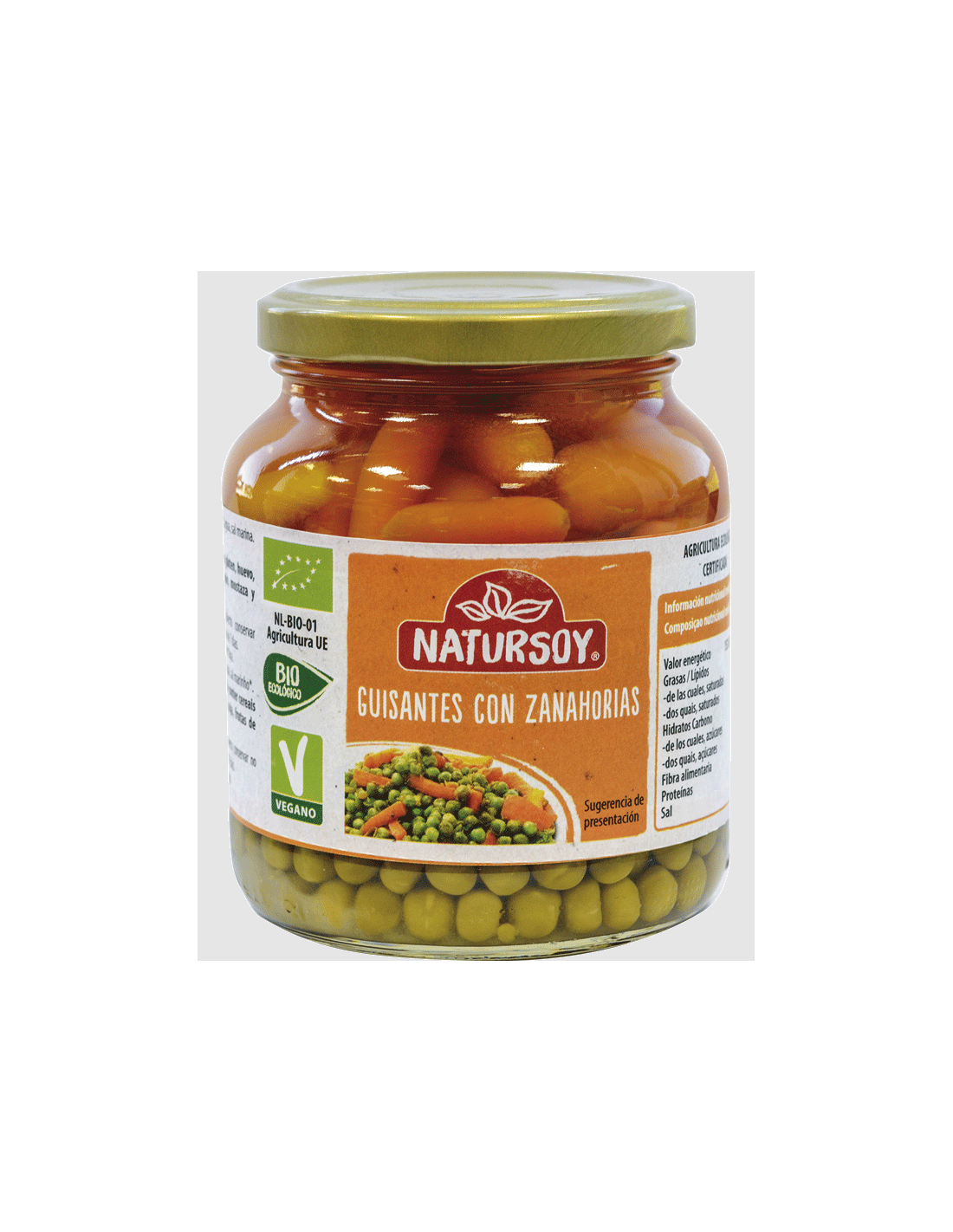 Guisantes Cocidos con Zanahoria Bio de Natursoy procedente de agricultura biològica.