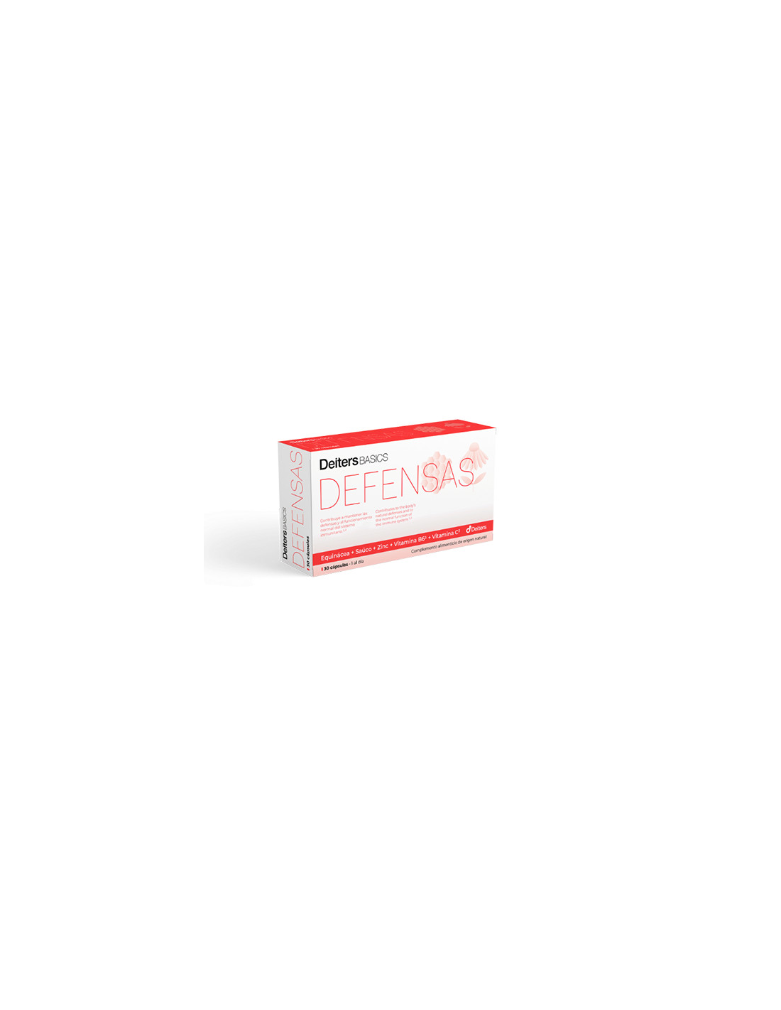 DEITERSDeiters Basics defensas es un complemento alimenticio en forma de cápsulas a base de Equinácea, Saúco, Zinc, Vitamina B6 y Vitamina C que contribuye al funcionamiento normal del sistema inmunitario.