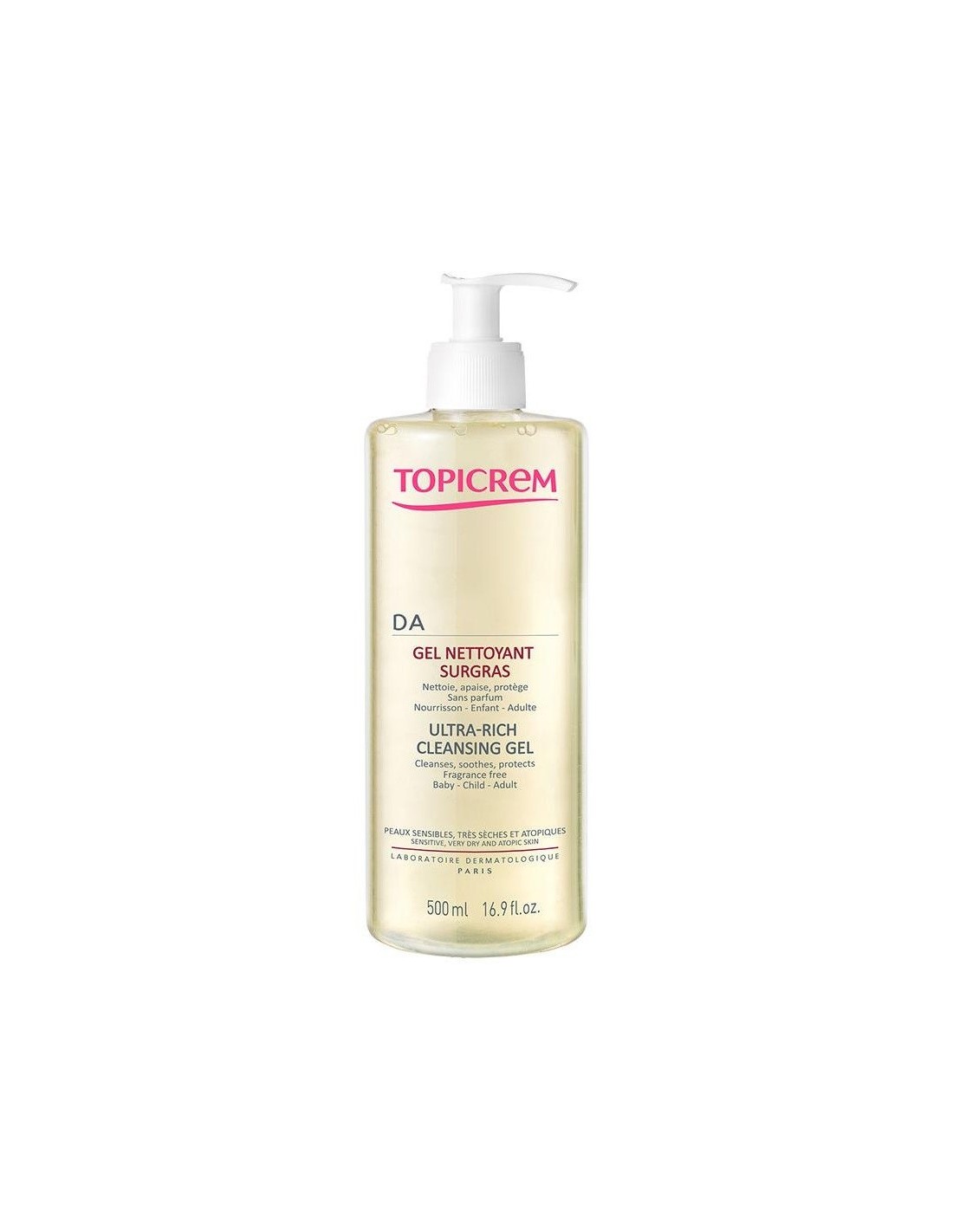 TOPICREMHa sido formulado especialmente para la higiene diaria de las pieles sensibles, muy secas y atópicas de recién nacido, niños y adulto. Su base limpiadora sobreengrasante ultra suave, contiene un complejo de activos relipidizantes y antirritantes para proteger la barrera cutánea. Fórmula hipoalergénica, sin perfume, sin jabón, sin colorantes, sin parabenos, sin fenoxietanol. Testado en pieles atópicas bajo control dermatológico, pediátrico y oftalmológico. No irrita los ojos