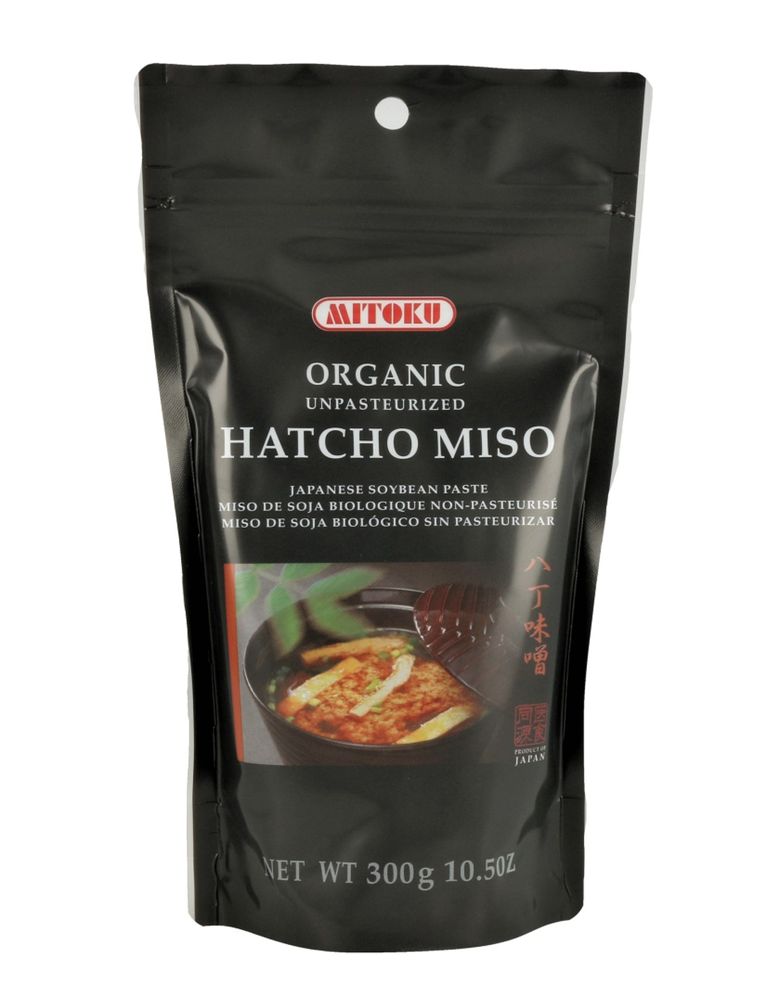 El Hatcho Miso de Mitoku está compuesto principalmente por soja fermentada, sin someterse a pasteurización, lo que mantiene intactas sus propiedades y sabor característico. Su formato en bolsita permite conservar la frescura y facilita su uso en diversas preparaciones, desde sopas hasta aderezos.