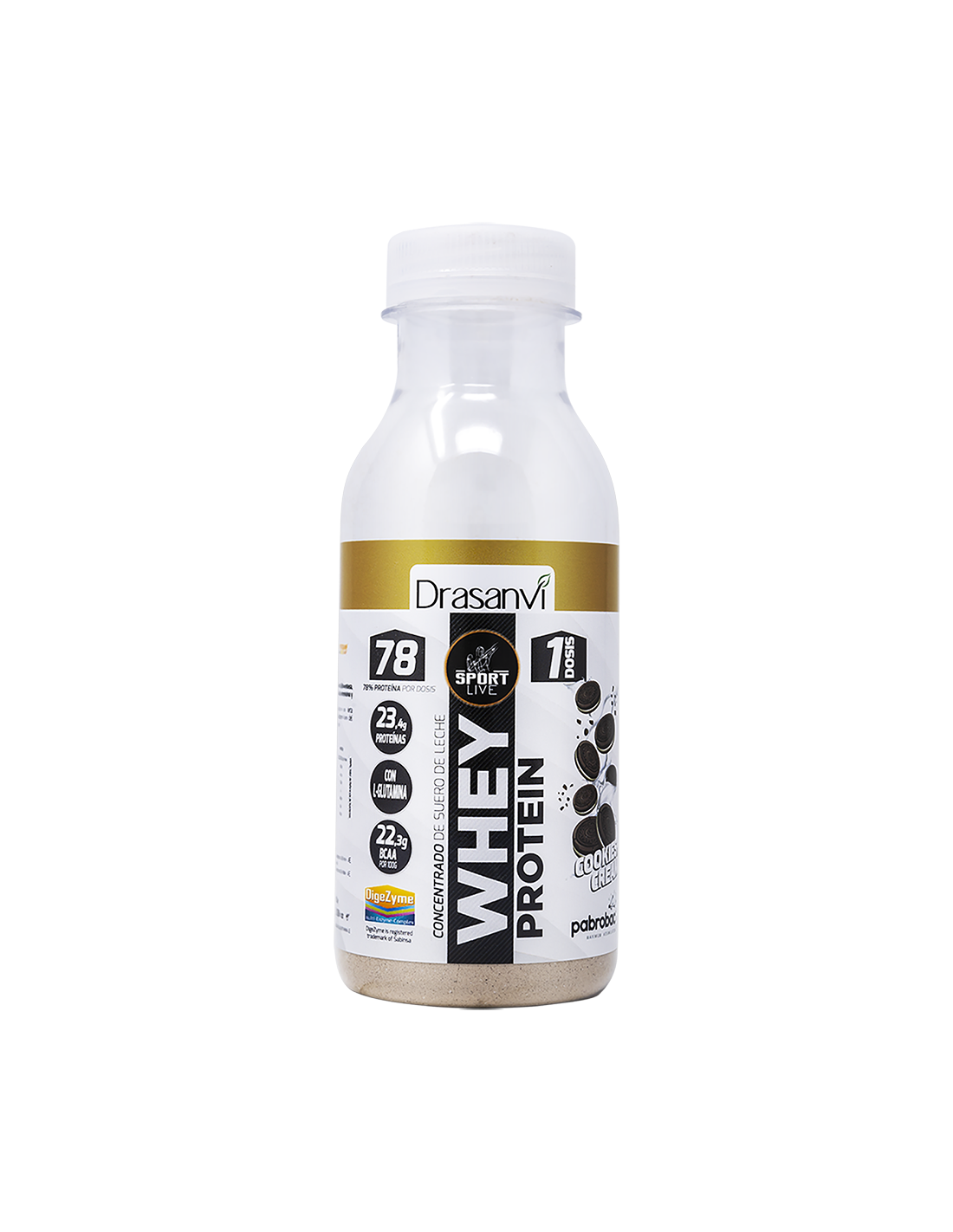 DRASANVI SPORT LIVECaracterísticas y Beneficios de la Botella Monodosis Whey Protein Concentrado Cookies And Cream 30G Sport Live Drasanvi