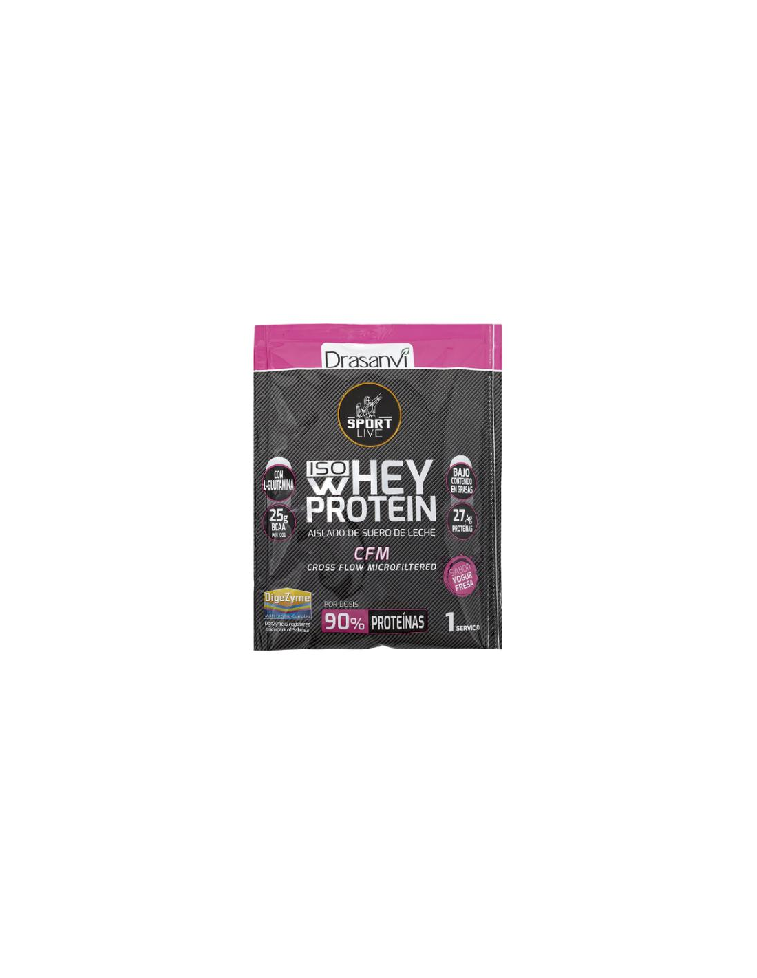 Monodosis Whey Protein Aislado Yogur Fresa 30G Sport Live Drasanvi