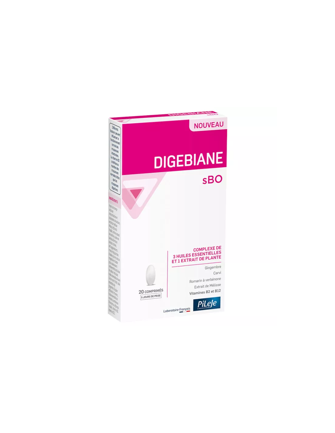 PILEJEDigebiane sBO es un complemento alimenticio destinado a ayudar a las personas que experimentan molestias digestivas gracias a su composición en vitamina B2. La vitamina B2 contribuye al mantenimiento de las mucosas normales, como la mucosa digestiva. Además, contiene aceites esenciales y un extracto vegetal con ingredientes activos reconocidos.