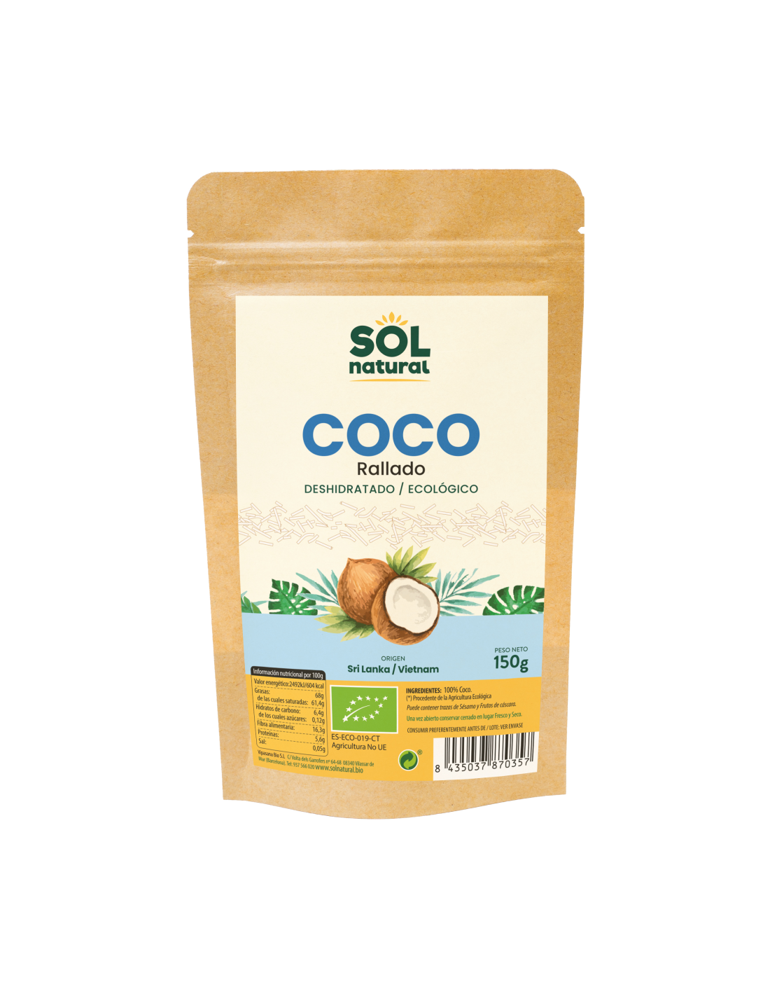 - Envases prácticos de 150 g que mantienen la frescura y el aroma natural del coco rallado.