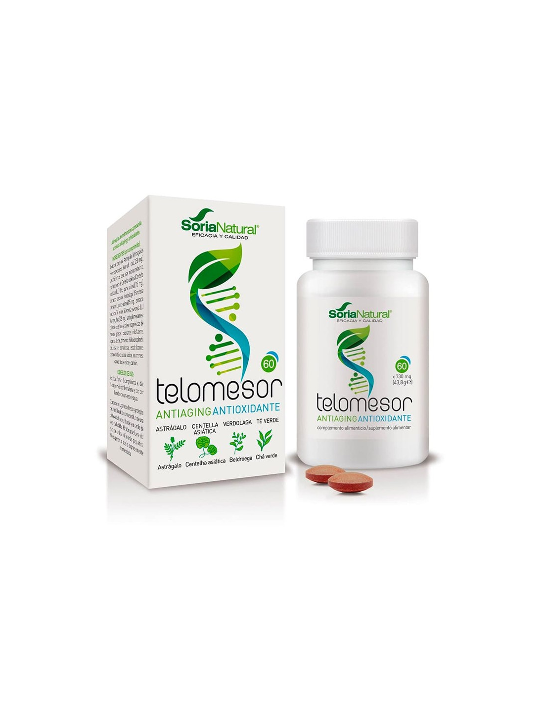 El Pack de 2 ud Telomesor Comprimidos de Soria Natural es la solución perfecta para quienes buscan un cuidado integral y natural para su bienestar diario. Este producto exclusivo combina ingredientes seleccionados cuidadosamente para ofrecer un efecto increíble que ayuda a mantener la vitalidad y la salud celular de manera instantánea.