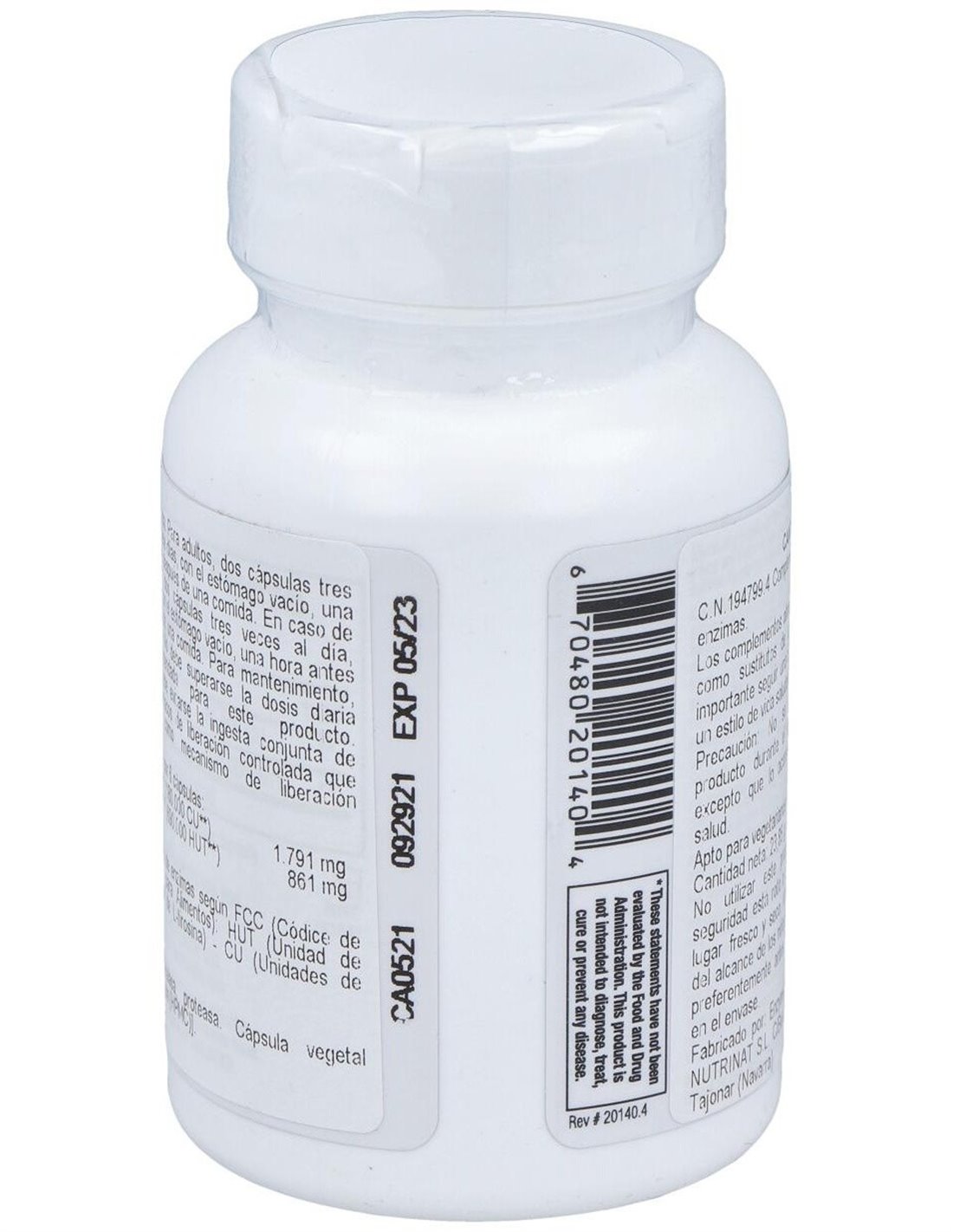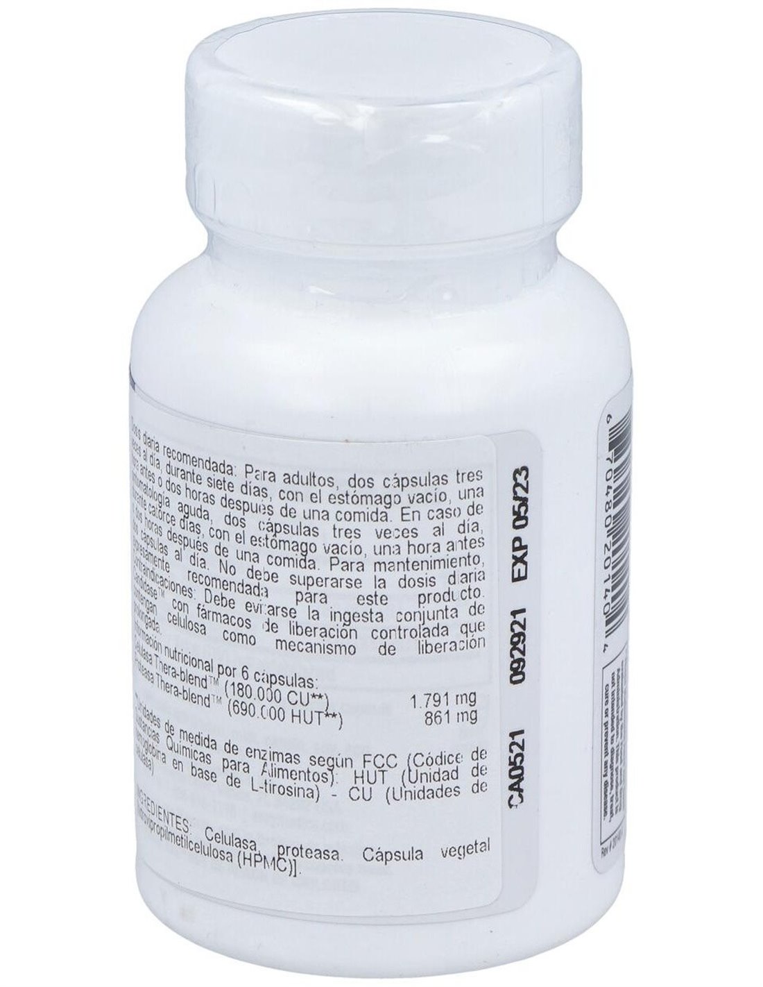 Complemento alimenticio a base de celulasa y proteasa Thera-blend. Apto para vegetarianos, veganos y Kosher.