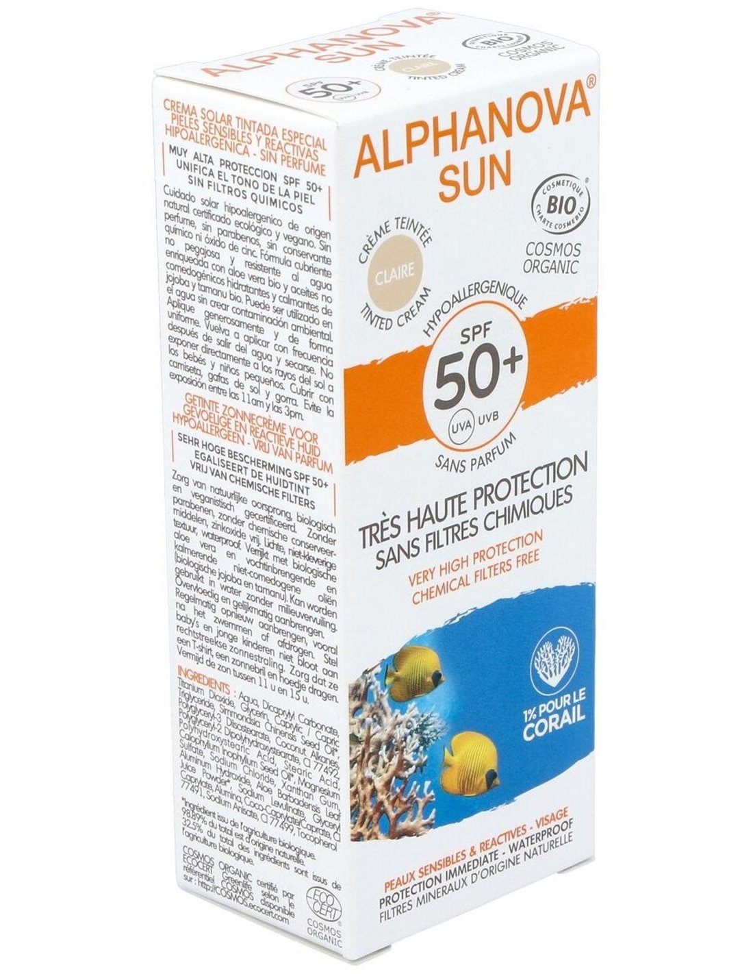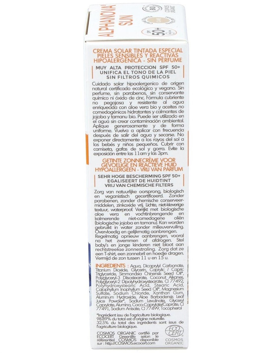 Aporta una protección solar efectiva, natural e invisible. Certificado BIO COSMOS por ECOCERT, contiene filtros minerales naturales que garantizan una protección inmediata contra los rayos UVA y UVB. Su textura no grasa y transparente no deja marcas blancas en la aplicación sobre la piel. Producto vegano.