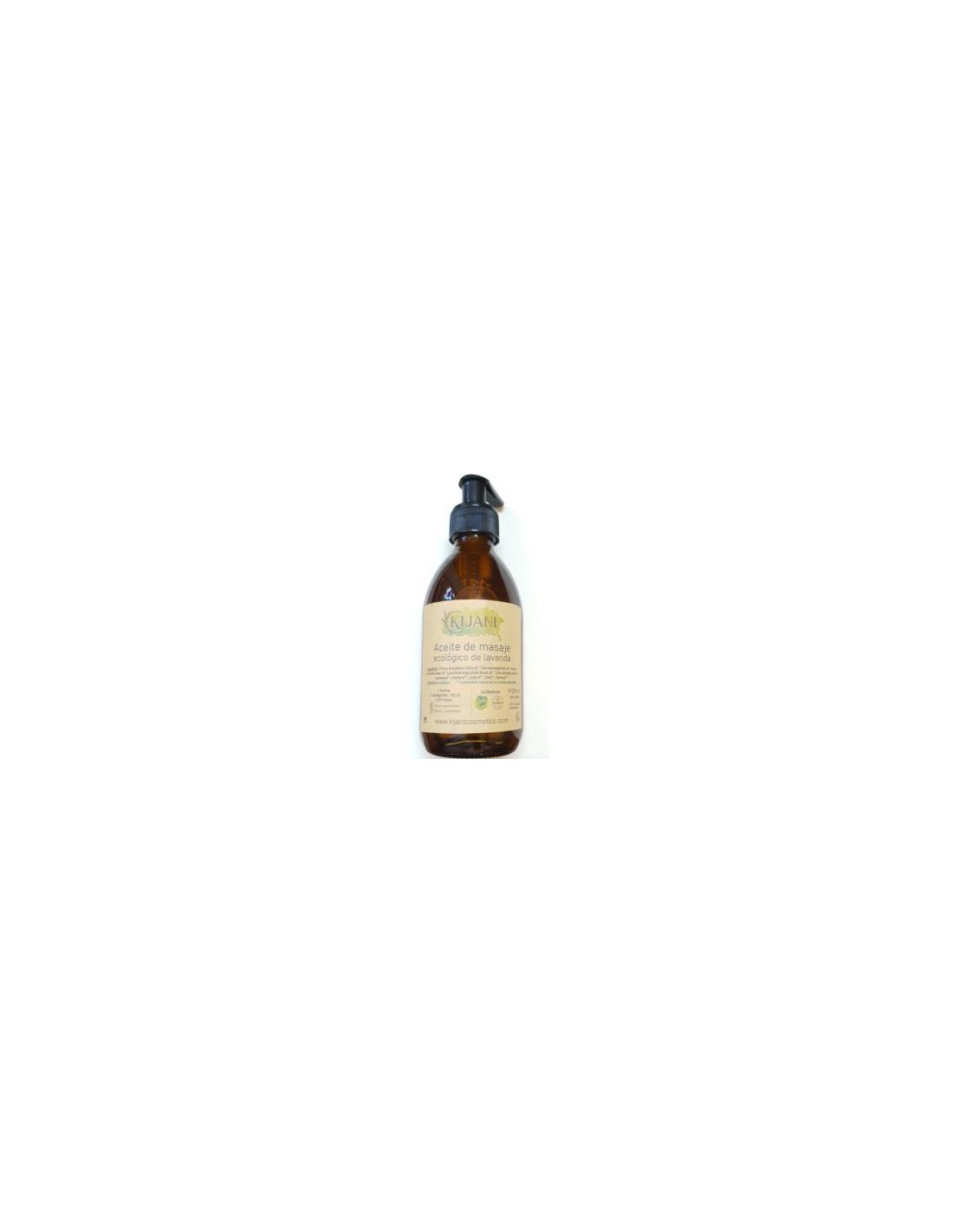 KIJANIAceite de masaje relajante elaborado con extractos de Lavanda, los cuales aportan un rico aroma a este aceite. La base del aceite, es sobre todo aceite de almendras ecológico, combinado en menor cantidad con aceite de oliva y ricino, los cuales hacen una textura suave pero duradera que facilitará la práctica de masajes, aportando un ligero efecto relajante al músculo.