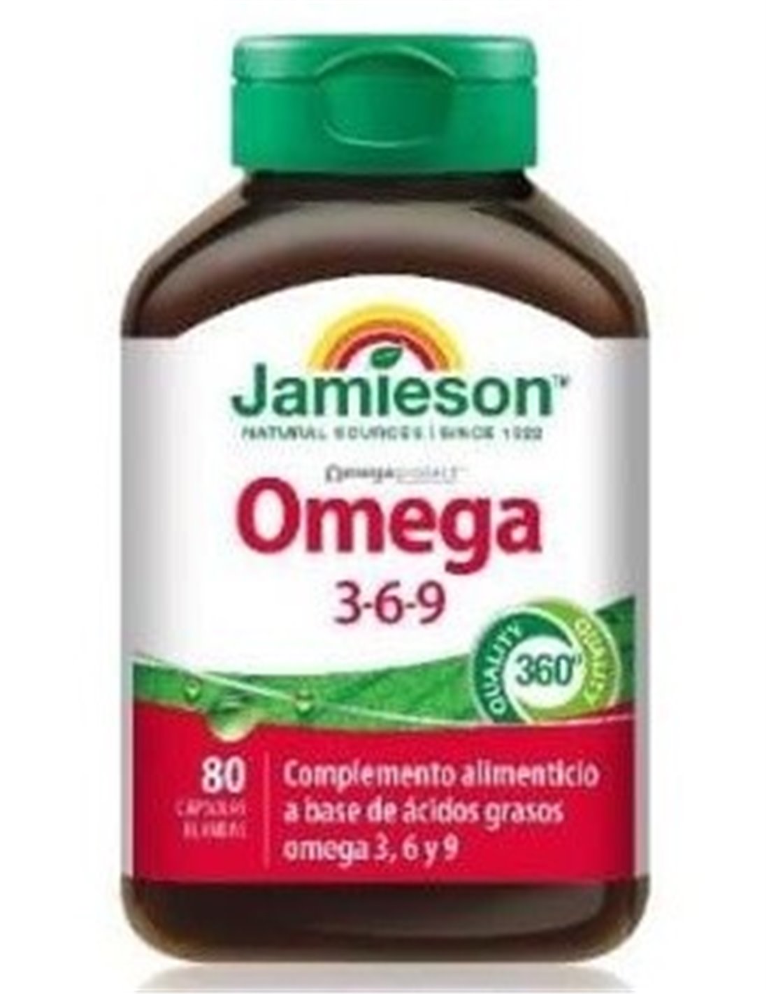 JAMIESONComplemento alimenticio de ácidos grasos insaturados, obtenido a partir de aceites frescos, puros y prensados en frío de lino, borraja y pescado. El ácido alfa-linolénico (ALA) y el ácido linoleico (LA) contribuyen a mantener los niveles normales de colesterol en la sangre. El DHA contribuye a una función normal del cerebro y un normal mantenimiento de la visión.\ \ Jamieson Omega 3 6 9 es un suplemento dietético presentado en cápsulas de gel, que contiene una combinación de ácidos grasos esenciales omega-3, 6 y 9. Cada frasco contiene 200 cápsulas, suficiente para un suministro de varios meses. Los ácidos grasos esenciales omega-3, 6 y 9 son importantes para el normal funcionamiento del cuerpo humano. El cuerpo no puede producir estos ácidos grasos por sí mismo, por lo que es importante obtenerlos a través de la dieta o mediante suplementos alimenticios. Jamieson Omega 3-6-9 contiene aceites de lino orgánico, borraja y pescado de origen sostenible, que son fuentes naturales de estos ácidos grasos esenciales. Estos omegas contribuyen a mantener el sistema cardiovascular en condiciones normales. La suplementación con omega-3 puede ayudar a mantener niveles normales de triglicéridos y colesterol. Por otro lado, los ácidos grasos omega 6 son importantes como apoyo para el desarrollo y la función del cerebro, así como para el normal mantenimiento de la piel y los huesos. Los ácidos grasos omega-9 son comúnmente encontrados en aceites vegetales y ayudan a mantener niveles normales de colesterol en sangre.