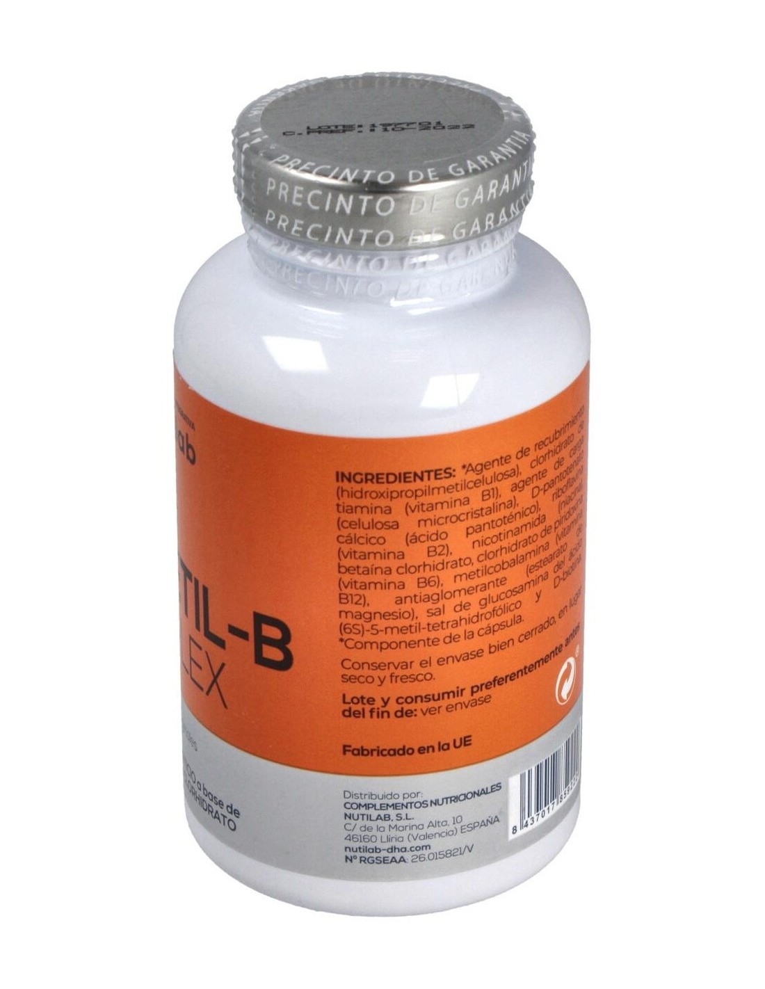 Nutimetil-B Complex 60Cap. de Nutilab ofrece una opción práctica para apoyar las necesidades nutricionales relacionadas con las vitaminas del complejo B, integrándose de manera sencilla en el cuidado diario.