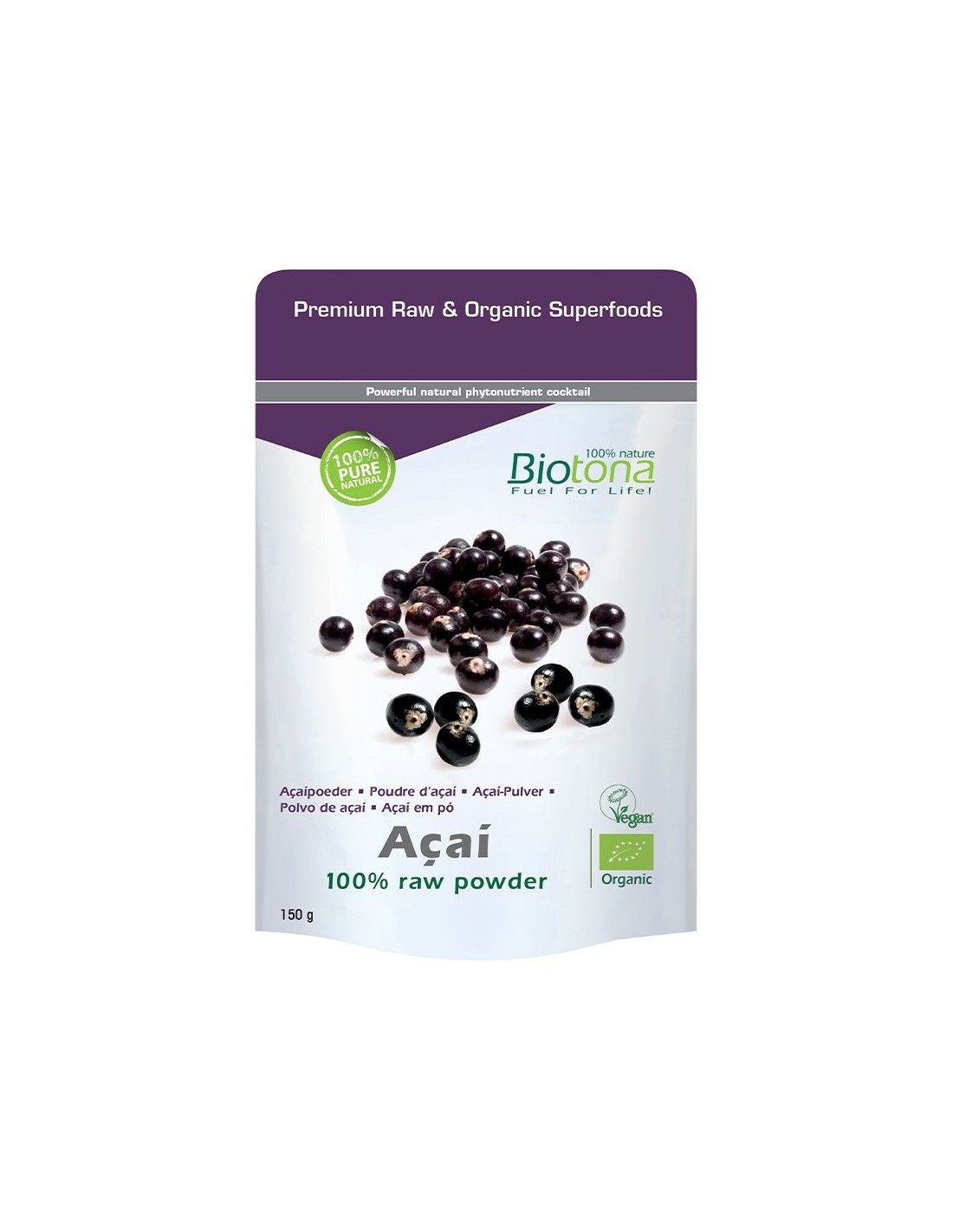 El polvo de Açai es un producto fresco obtenido de las pequeñas bayas violáceas del açaí, una palma tropical que crece principalmente en la región Amazónica en América del sur. La pulpa de esta fruta es deliciosa y consumida como una golosina por la población indígena.Además de por su sabor, estas bayas son muy apreciadas por su valor nutritivo. Las bayas de açaí de Biotona se cultivan de forma 100% biológica en Brasil y son objeto de una selección rigurosa inmediatamente después de la recolección, antes de ser reducidas a polvo mediante un proceso de liofilización. Gusto, color y perfume son prácticamente iguales a la baya fresca. Este procedimiento de secado, también conserva las cualidades nutricionales.Ingredientes:Polvo de açaí* (Euterpe oleracea & Euterpe precatoria) (100%) de Brasil. (*) Cultivo ecológicoModo de empleo:Añadir polvo de açai a smoothies y batidos en combinación con jugos de frutas o con otros superalimentos, o simplemente en leche, yogur o agua. Presentación:Envase de 150 gramos.
