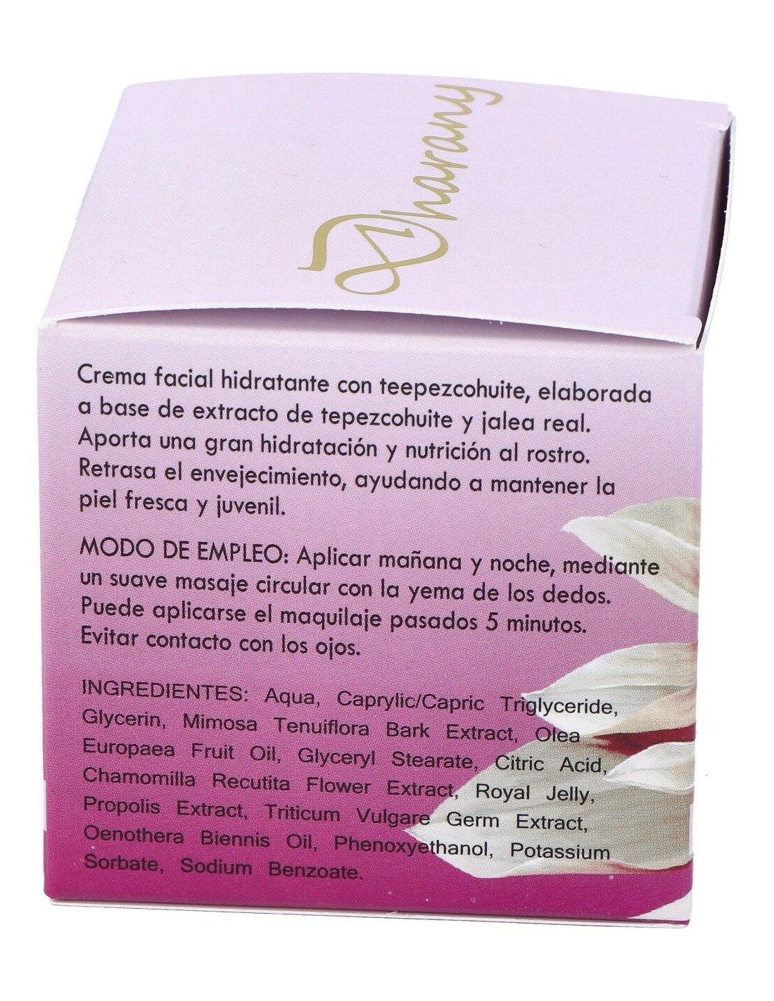 Crema facial hidratante con tepezcohuite, elaborada a base de extracto de tepezcohuite y jalea real. Aporta una gran hidratación y nutrición al rostro. Retrasa el envejecimiento, ayudando a mantener la piel fresca y juvenil.