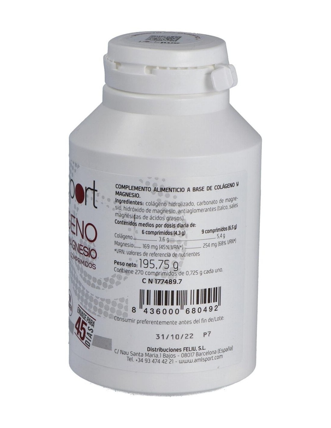 Colageno Con Magnesio 270Comp. Amlsport de Ana Maria Lajusticia