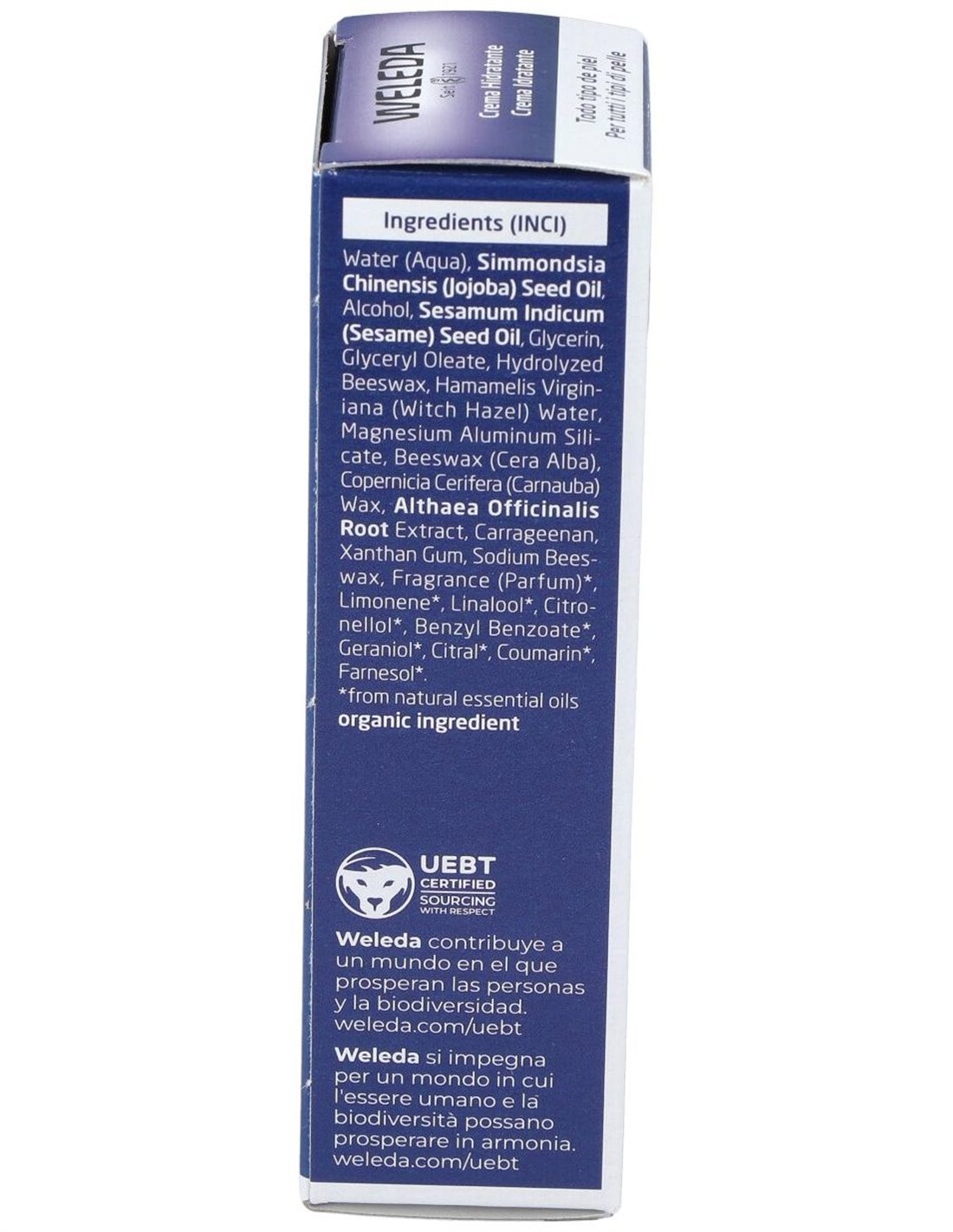Agua, aceite de jojoba, aceite de sésamo, alcohol, agua destilada de hamamelis, glicerina, gliceril oleato, cera de abeja hidrolizada, arcilla, extractos de raíz de malavisco, xántano, cera de abeja, cera de carnauba, jabón de cera de abeja, carragenato, aceites esenciales naturales.