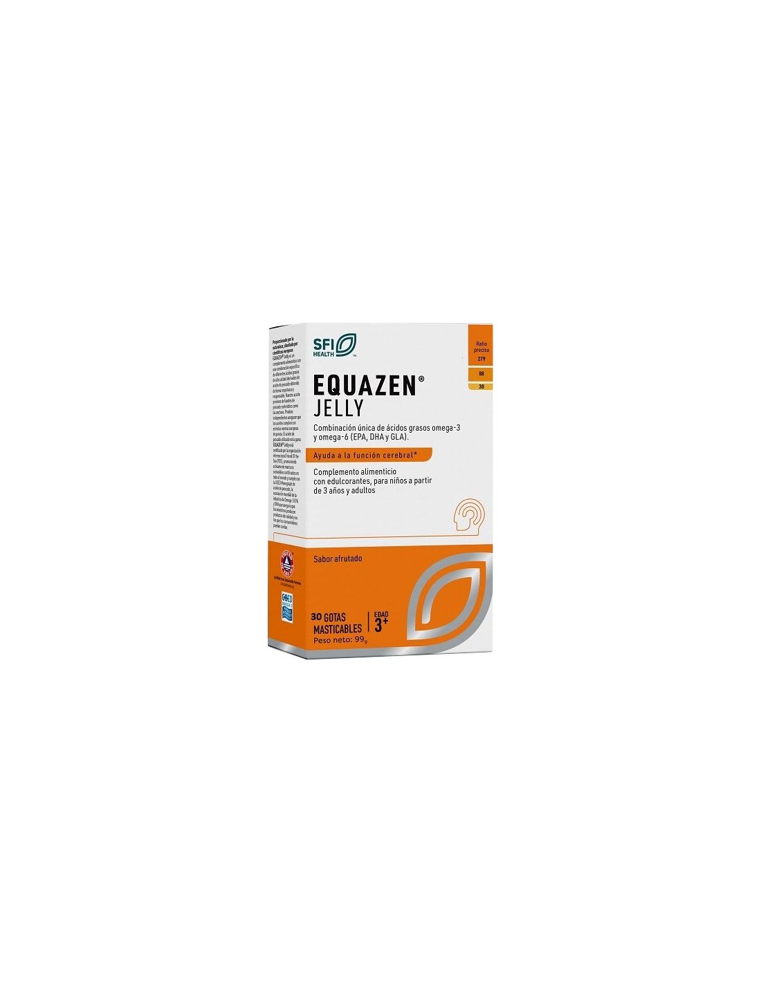 Equazen Jelly es un novedoso formato en gotas masticables con un agradable sabor a frutas. Es una combinación única de ácidos grasos Omega 3 y 6 (EPA, DHA y GLA) adecuado para niños a partir de 3 años y adultos.
