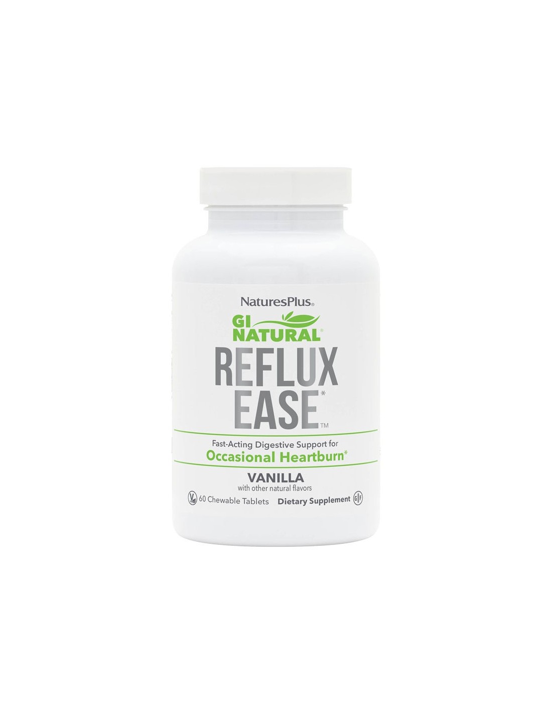 GI Natural Reflux Ease es una fórmula innovadora de soporte digestivo que proporciona 400 mg de Reflux Ease una mezcla de alginatos y sales carbonatadas que neutraliza ligeramente el exceso de acidez en el estómago y actúa favorablemente contra el reflujo.