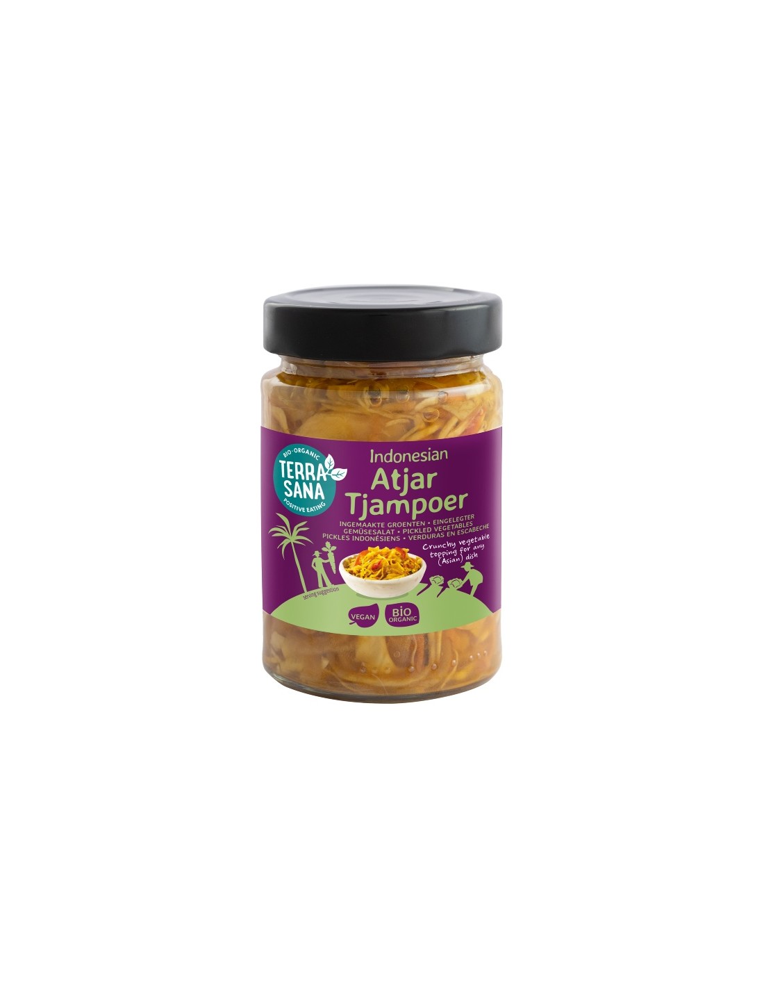 Descubre el sabor único del Atjar Tjampoer Kimchi Indonesio de TERRASANA, una deliciosa mezcla fermentada que combina tradición y frescura. Perfecto para acompañar tus platos favoritos, este kimchi ofrece un toque picante y ácido que realza cualquier comida. Elaborado con ingredientes naturales y de alta calidad, es ideal para quienes buscan una opción saludable y llena de sabor. Añade un toque exótico y nutritivo a tu cocina con TERRASANA, la marca que cuida cada detalle para brindarte lo mejor.