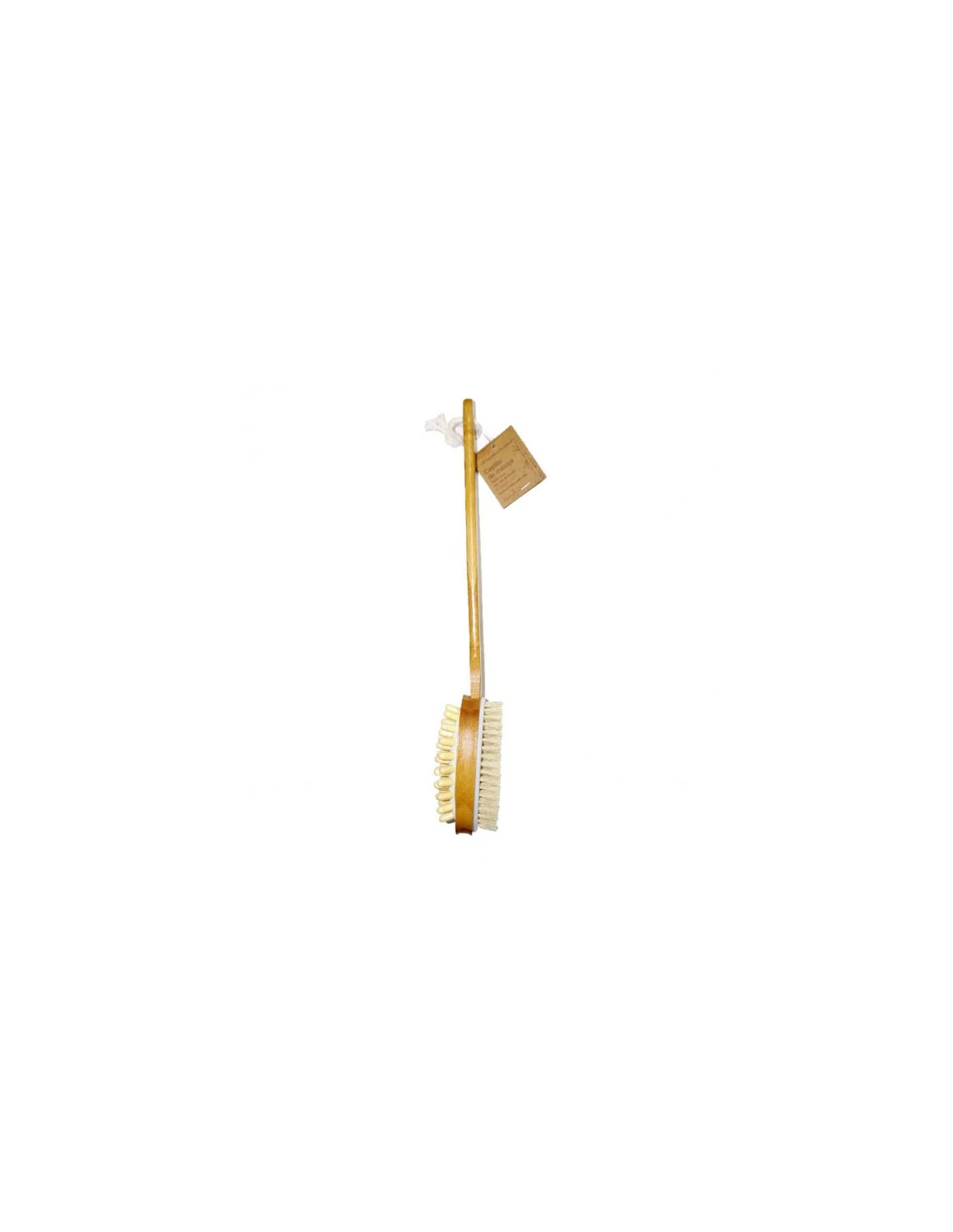 El cepillo está fabricado con madera de haya, conocida por su resistencia y acabado suave, lo que garantiza durabilidad y un tacto agradable. Sus cerdas largas de fibre vegetal son perfectas para estimular la piel y mejorar la circulación sanguínea, proporcionando un masaje relajante y revitalizante. Gracias a su cinturón ajustable, el cepillo se adapta cómodamente a la mano, permitiendo un agarre firme y un manejo sencillo, ideal para usarlo en cualquier parte del cuerpo.