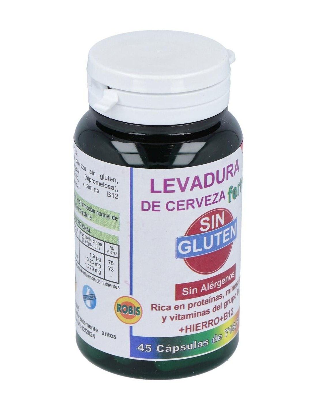 La Levadura De Cerveza Forte Sin Gluten 45Cap. de Robis es un suplemento para personas con dietas sin gluten, que aporta nutrientes esenciales mediante una fórmula libre de gluten, facilitando su integración en hábitos alimenticios específicos.