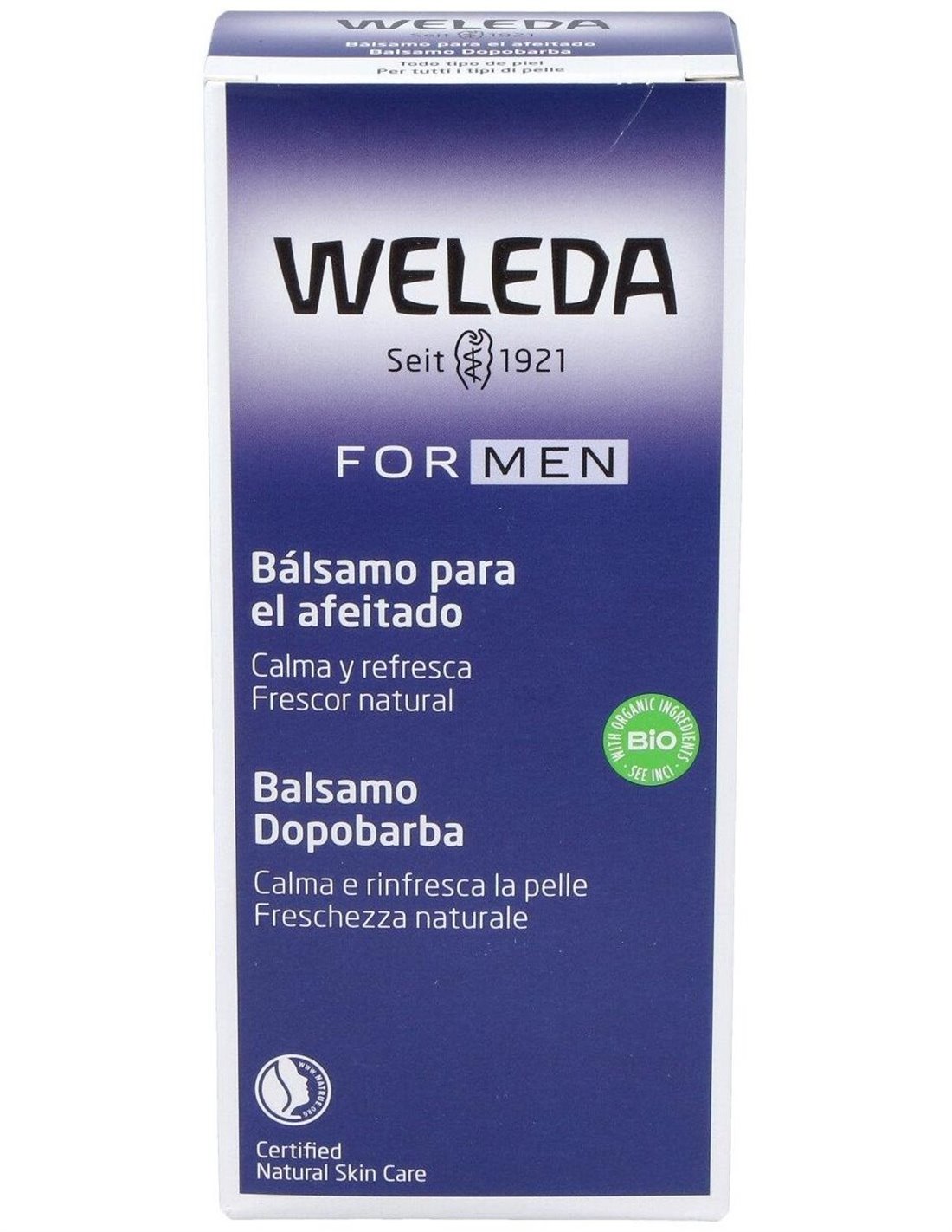 El Bálsamo After Shave (FOR MEN), 100ml de Weleda está diseñado para hombres que buscan un cuidado facial suave y equilibrado después del afeitado. Su fórmula está pensada para calmar la piel y aportar una sensación de frescura sin irritaciones.
