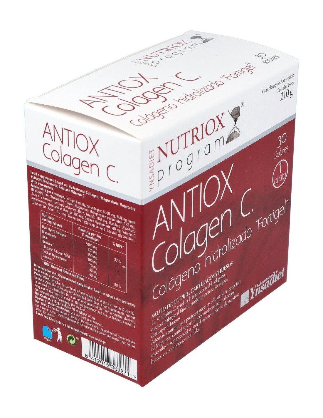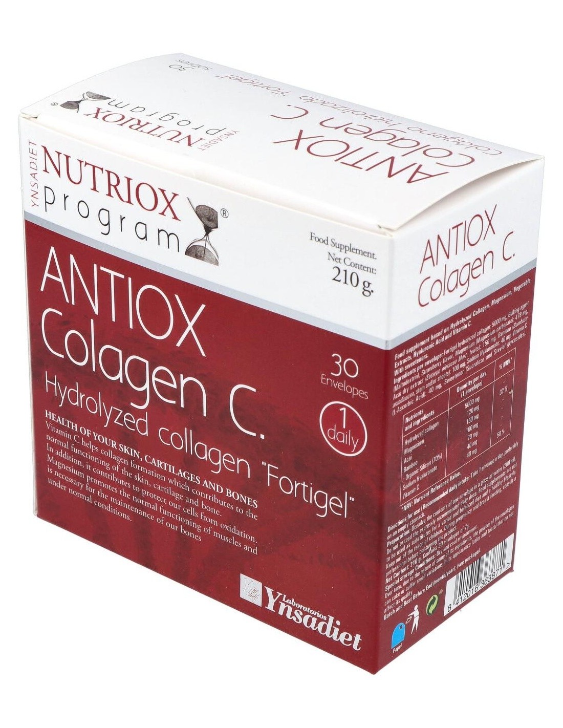 El Colágeno Antiox Fortigel 30 Sobres de Ynsadiet es un suplemento para personas que buscan apoyar la salud articular y la piel, formulado con colágeno Fortigel que contribuye a la regeneración y mantenimiento de tejidos.