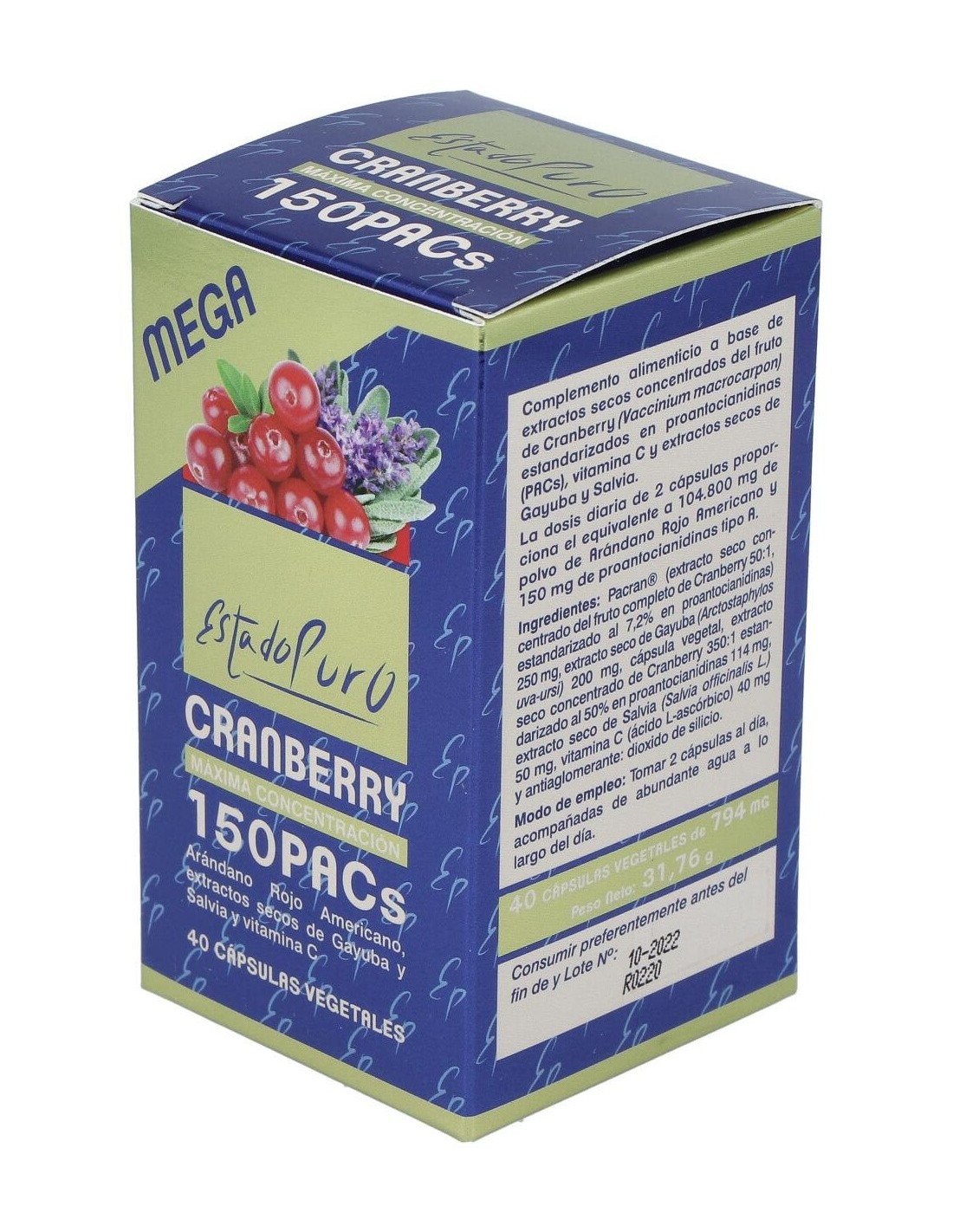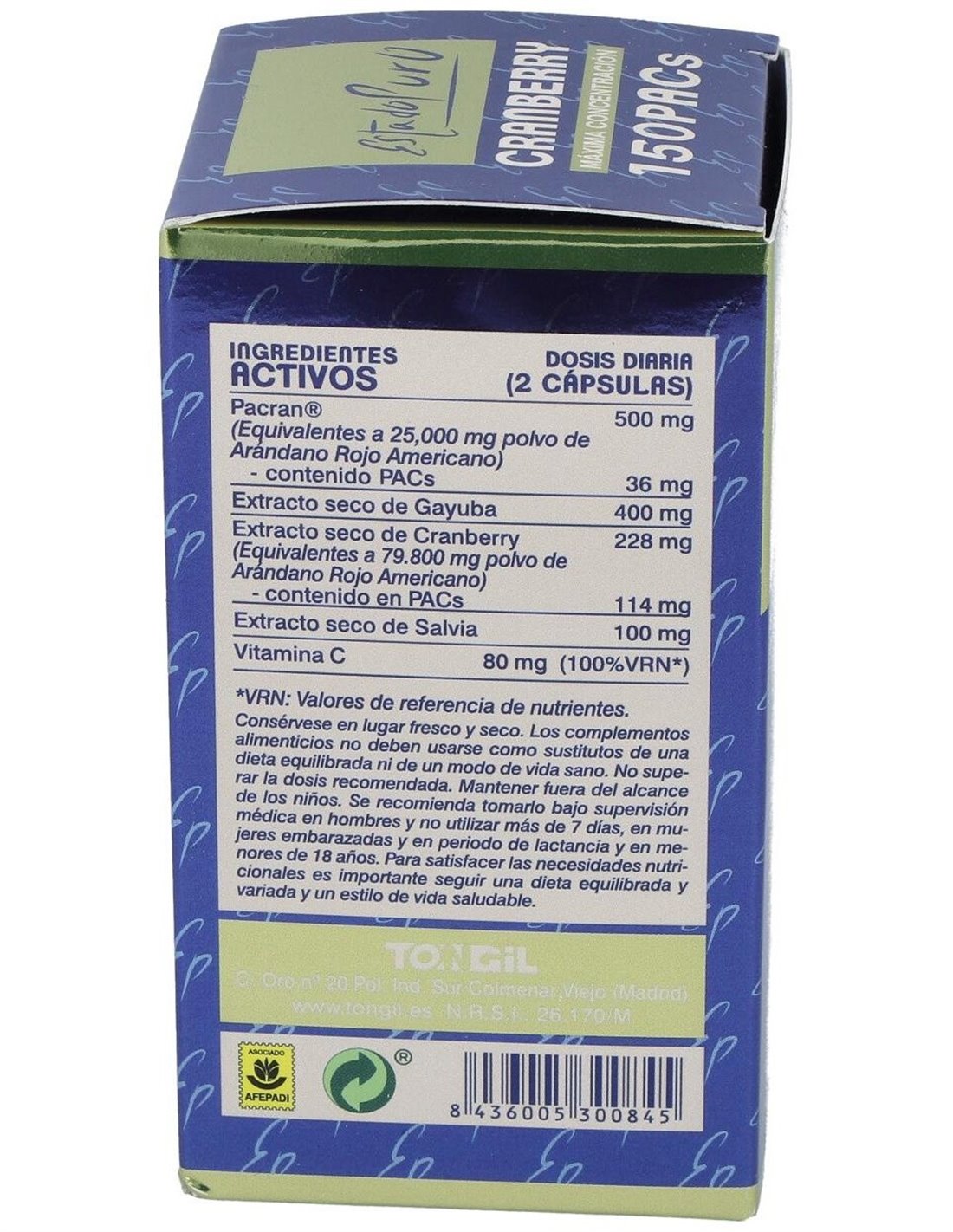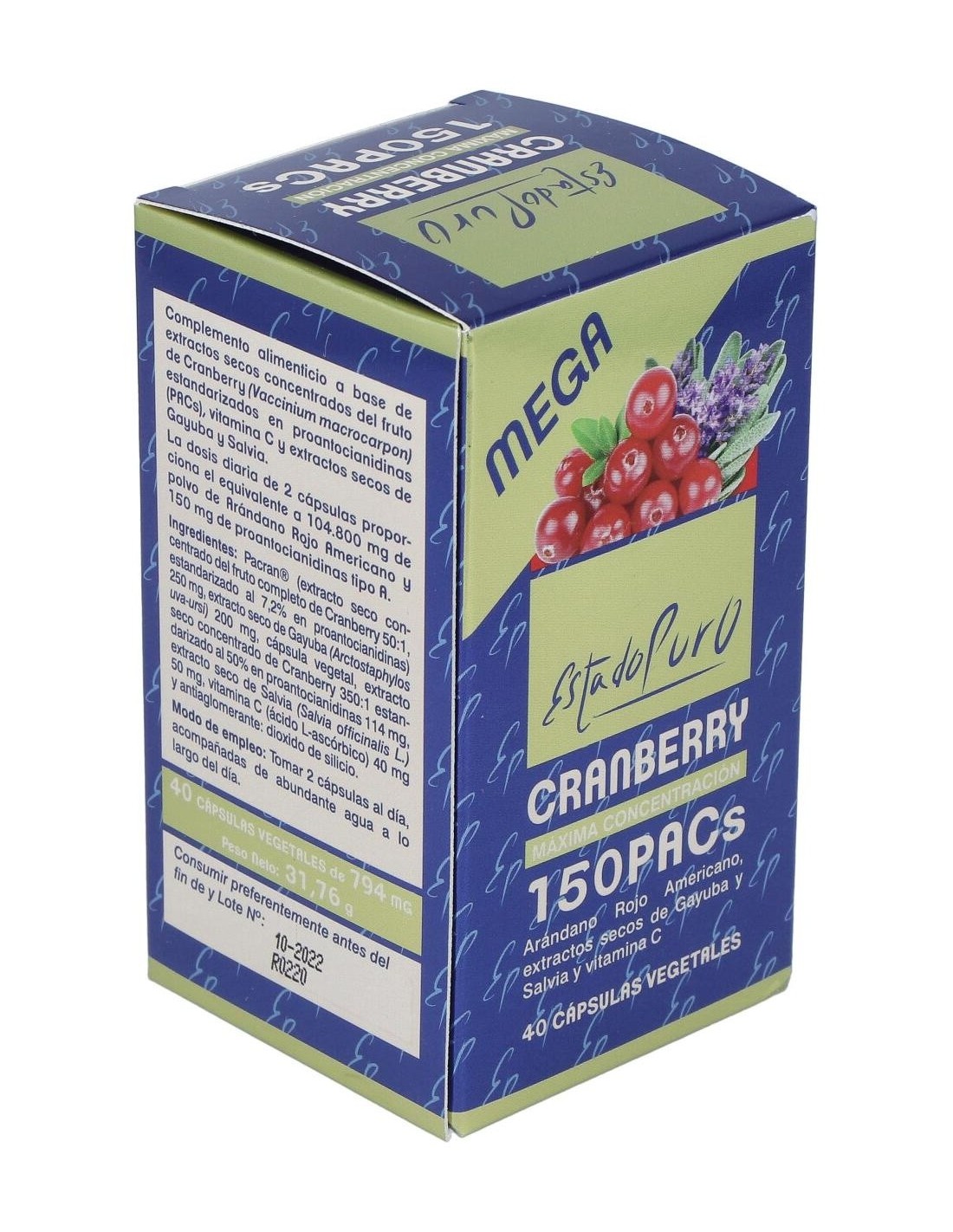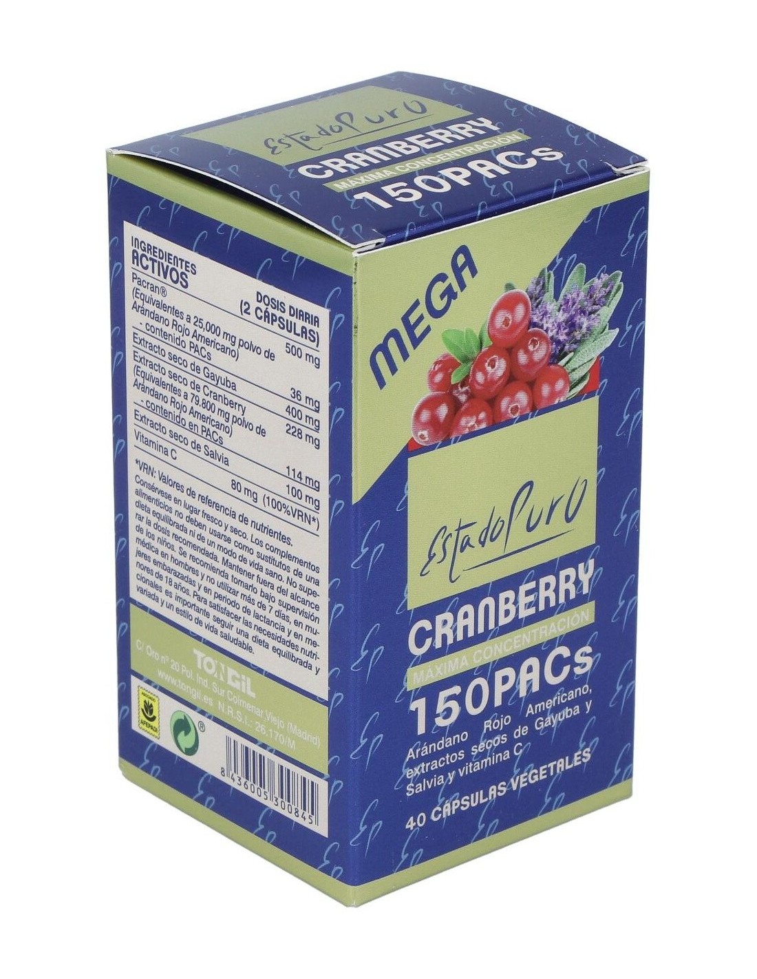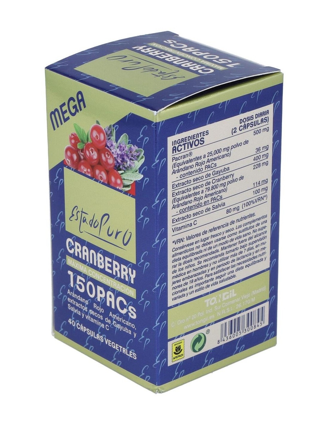 Cranberry Mega150 Pacs 40Cap. Estado Puro de Tongil ofrece una forma práctica de incluir extracto de arándano rojo en la alimentación habitual, apoyando hábitos orientados al cuidado personal.