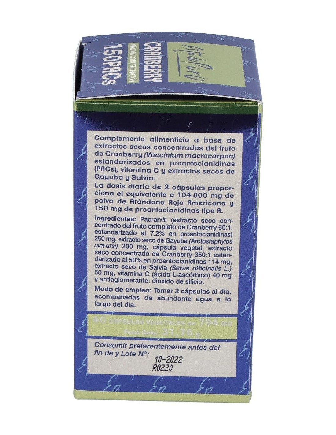 - Contiene 40 cápsulas con extracto puro de arándano rojo, facilitando una dosificación práctica y constante.