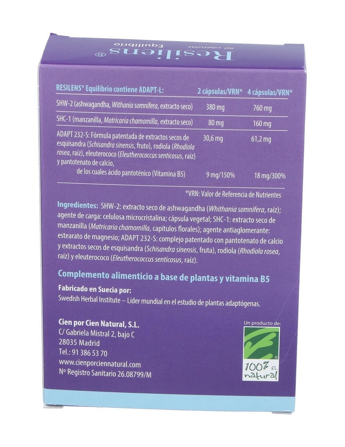 Resiliens Equilibrio 60Cap. de Cien Por Cien Natural ofrece una alternativa basada en ingredientes naturales para quienes desean apoyar su bienestar cotidiano con un producto de composición transparente y sencilla.