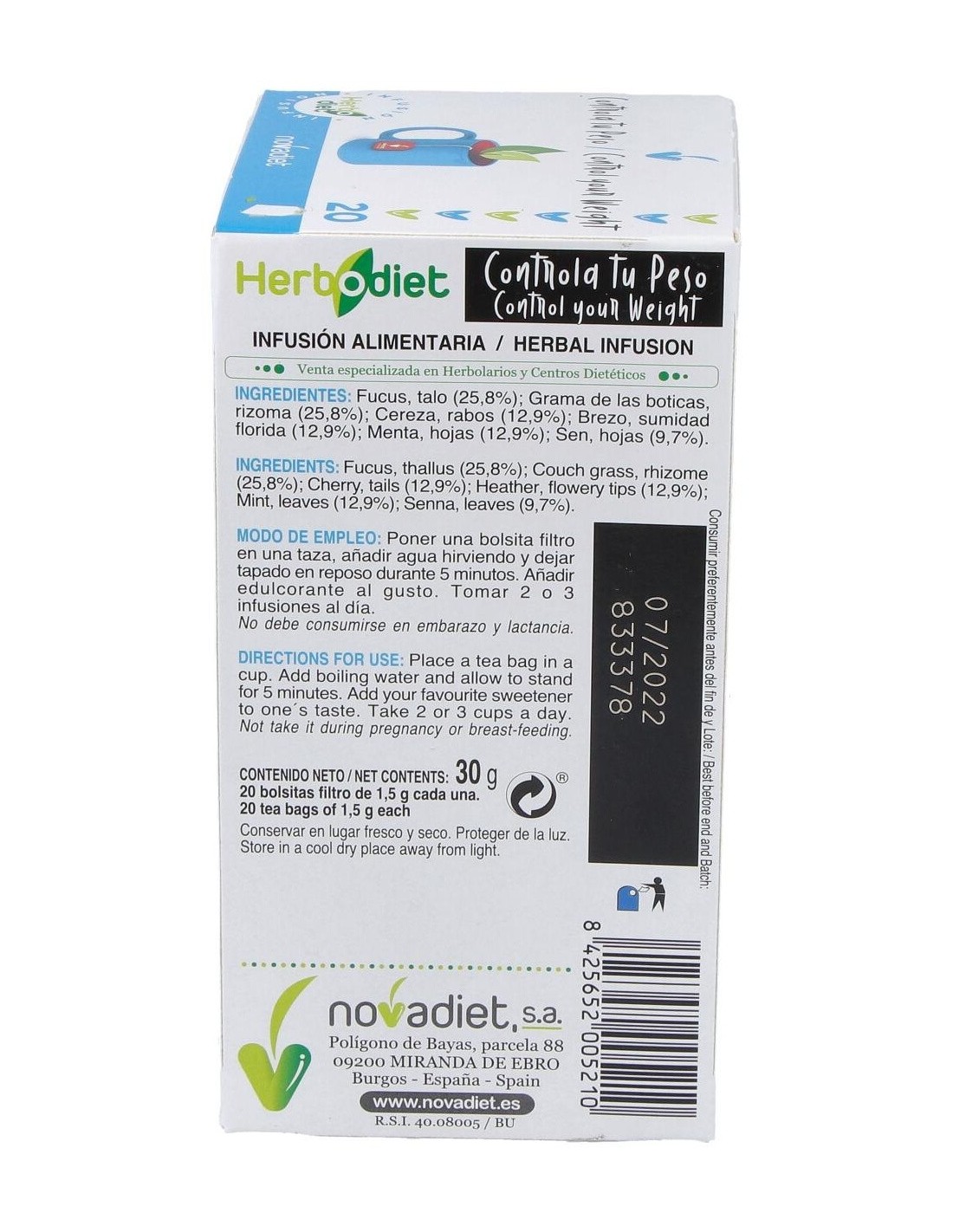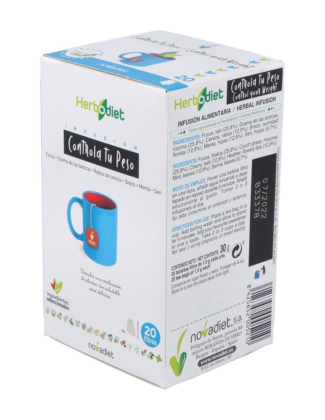 Herbodiet Controla Tu Peso Envase de 20 bolsitas filtro de 1,5 g. de Novadiet