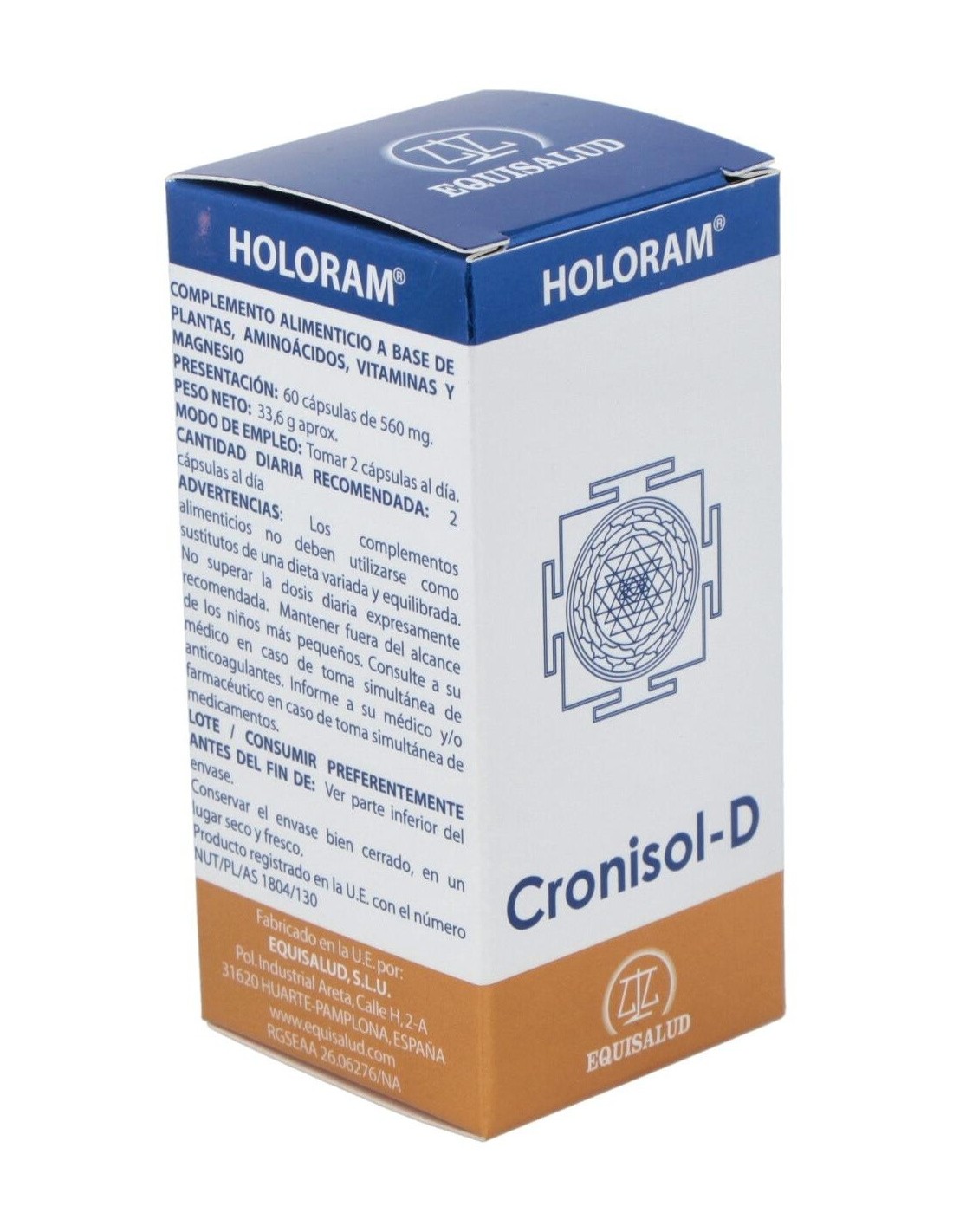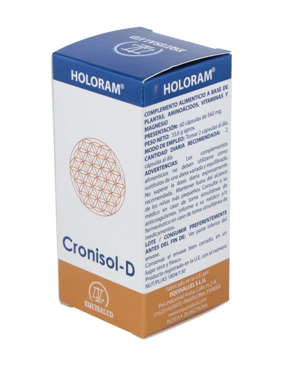 Holoram Cronisol-D (Cronidol) 60Cap. de Equisalud es un suplemento diseñado para personas que buscan apoyar su bienestar diario mediante ingredientes seleccionados que contribuyen a la regulación natural del organismo. Es adecuado para quienes desean complementar su rutina con un producto formulado para integrarse fácilmente en hábitos saludables.
