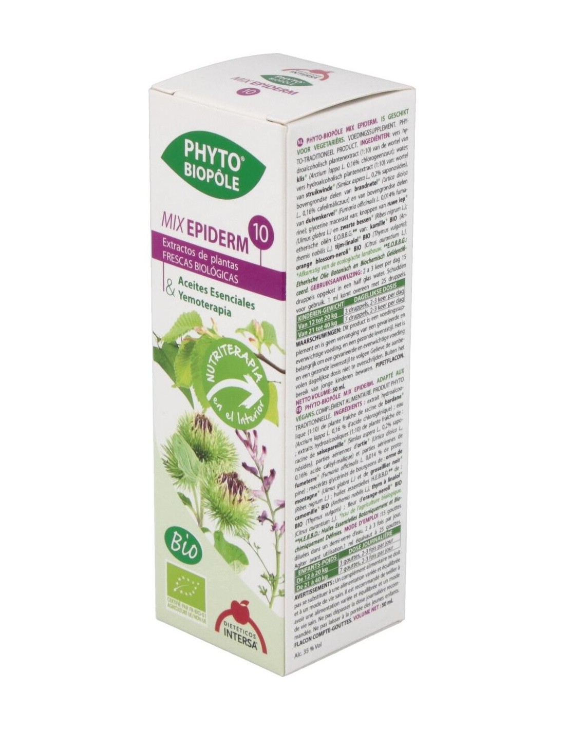 Phytobiopole Mix 10 Epiderm 50Ml de Intersa es un complemento nutricional para personas que buscan apoyar el bienestar de la piel, formulado con ingredientes que contribuyen a su cuidado y mantenimiento.