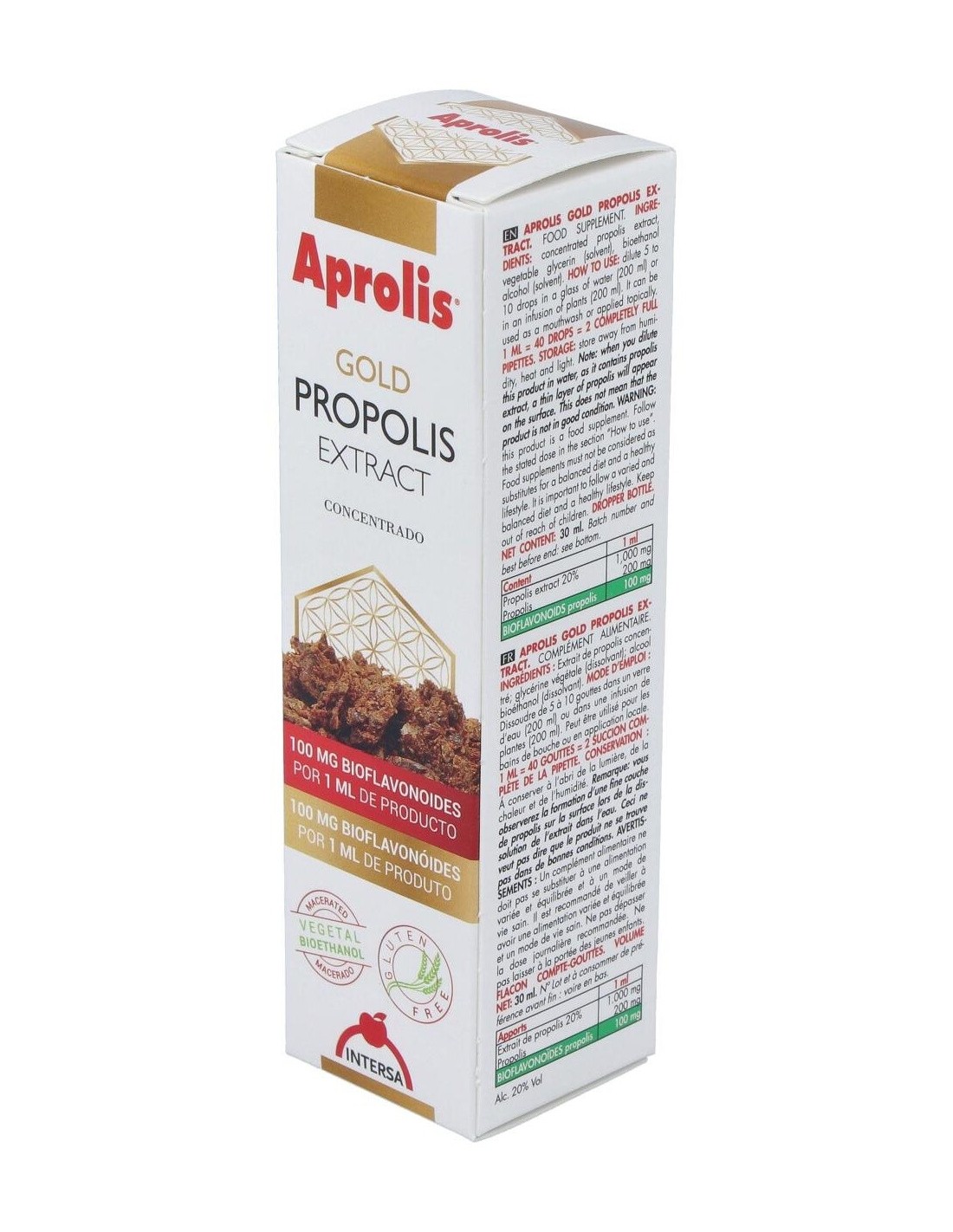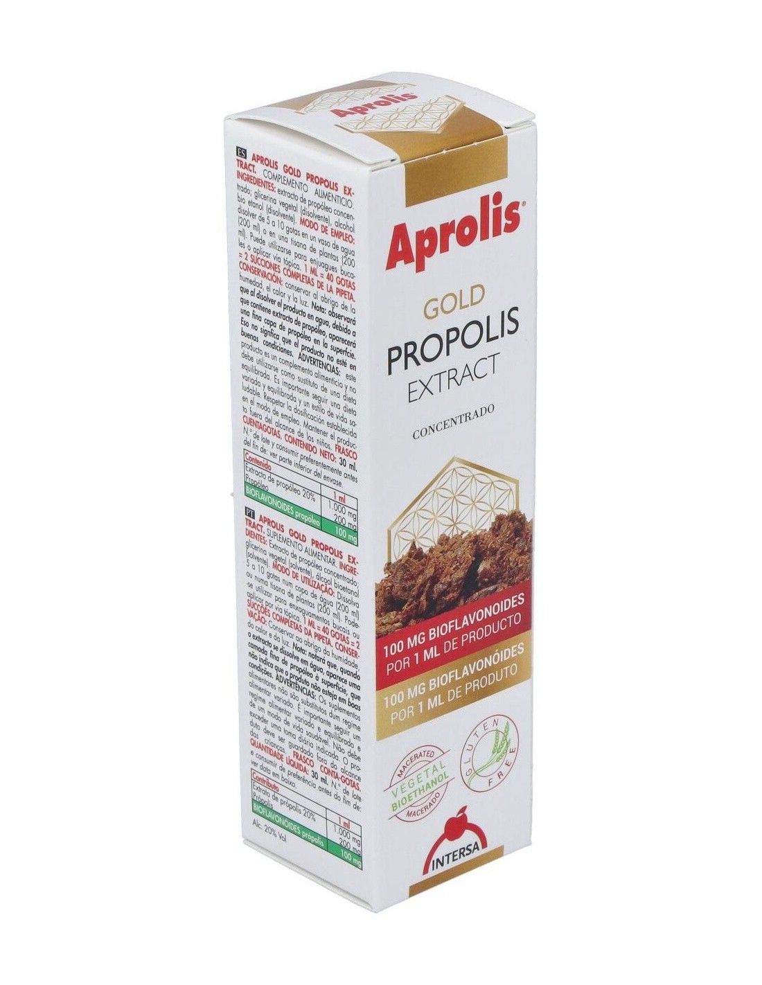 Extracto de propóleo concentrado (100 mg de bioflavonoides por dosis de 1 ml).