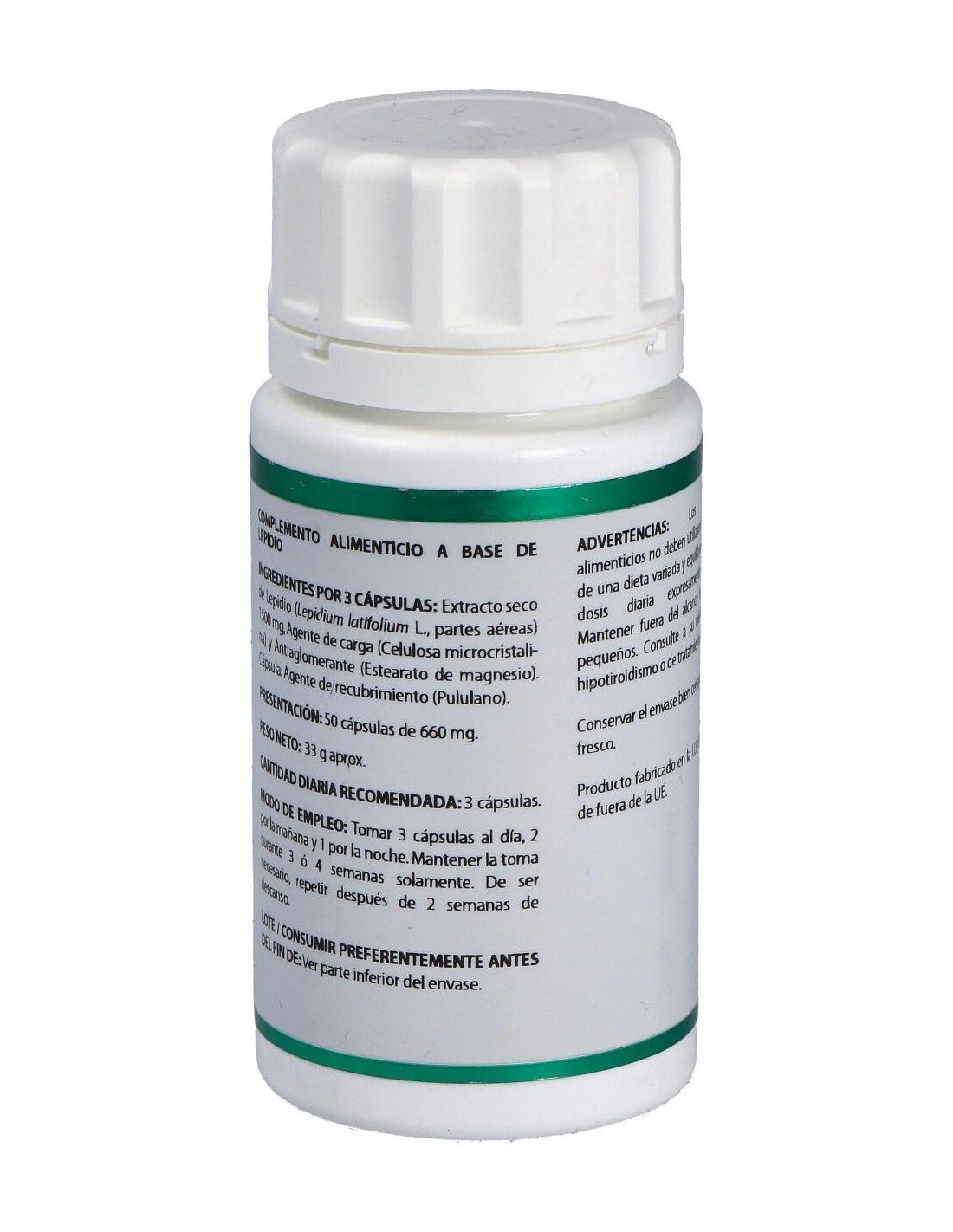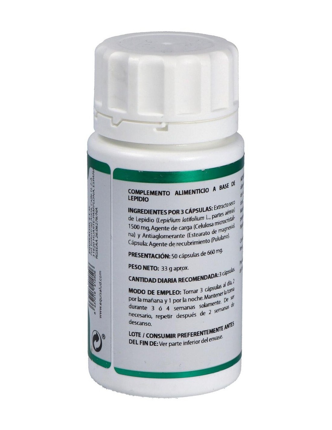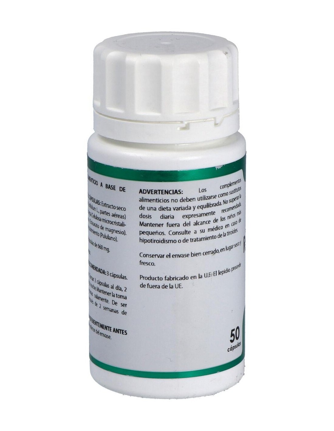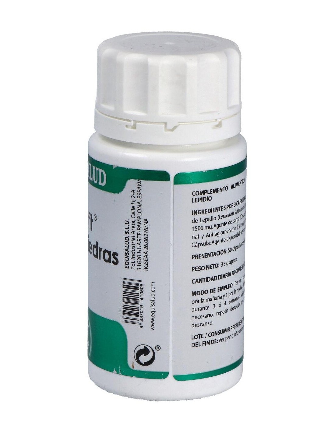 Complemento alimenticio a base de la planta Lepidio el rompepiedras que contribuye a tratar los problemas de piedras en el riñón. Es un gran depurativo y antioxidante. Tiene efectos antiinflamatorios y ofrece protección al hígado. Apto para diabéticos. Apto para veganos. Consultar antes con un especialista si se padece algún caso de tiroides.