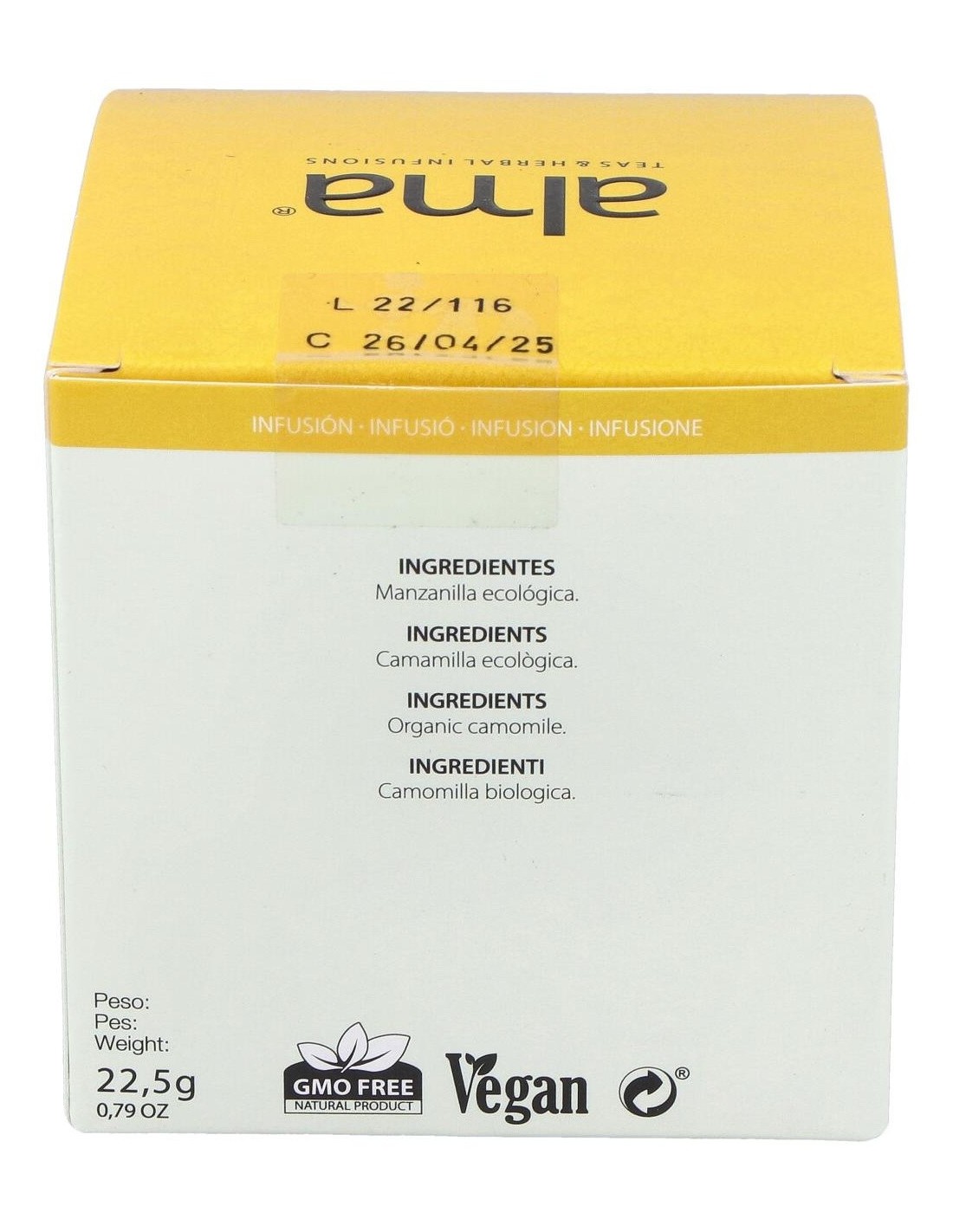 MANZANILLA infusion 15piramides. ECO VEGAN de ALMA HOME está disponible en pharmaceres.