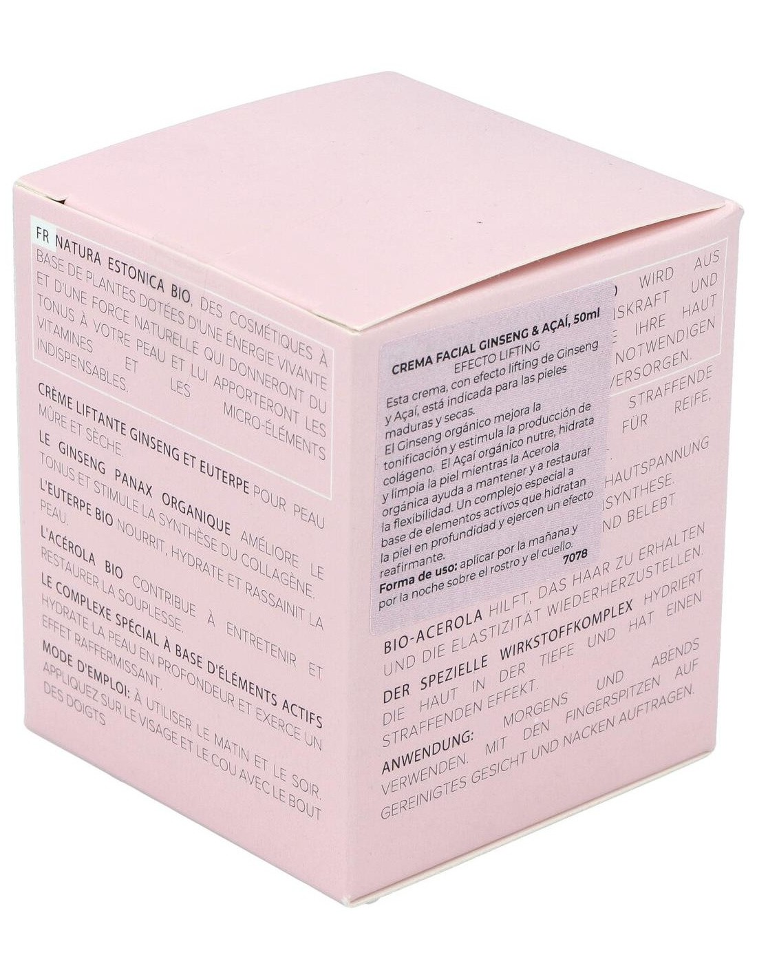 El complejo especial de ingredientes activos hidrata profundamente la piel y tiene un efecto reafirmante. Esta crema ha sido creada para la piel madura y seca. El ginseng orgánico mejora el tono de la piel y estimula la síntesis del colágeno. El acai orgánico nutre, hidrata y revitaliza la piel. La acerola orgánica ayuda a mantener y a restaurar la elasticidad.