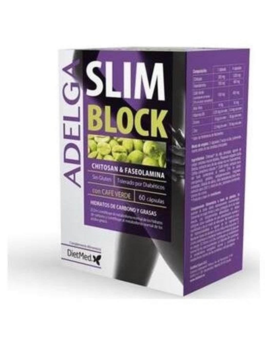 Dietmed Adelga Slim Blok 60caps es un complemento alimenticio para la ayuda de control de peso. Su composición ayuda a bloquear la absorción de hidratos de carbono y grasas, reduciendo los desequilibrios alimentarios. El producto tiene gran tolerancia, siendo apto incluso para personas diabéticas.