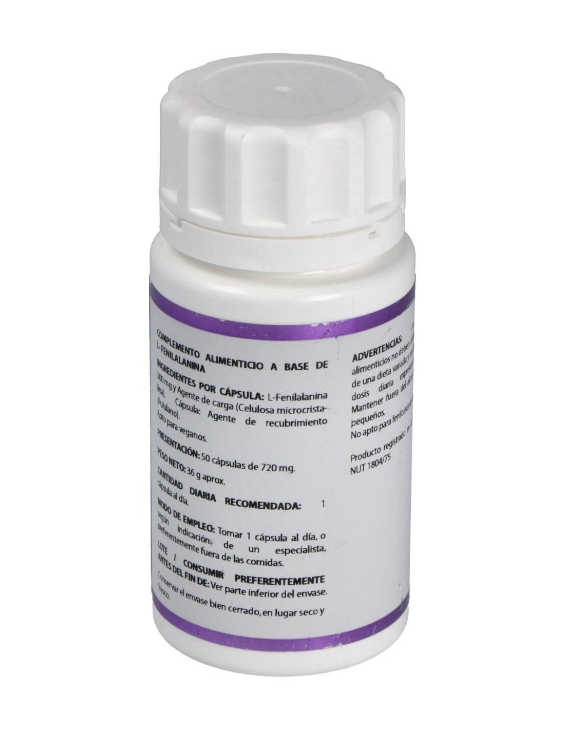 Complemento alimenticio a base de L-fenilalanina. Este aminoácido es precursor de la tirosina, un aminoácido que ayuda en la producción de neurohormonas, por lo que sus funciones son mantener activo el cerebro. También producen tiroxina, una hormona que se encarga del buen funcionamiento de la glándula del tiroides.