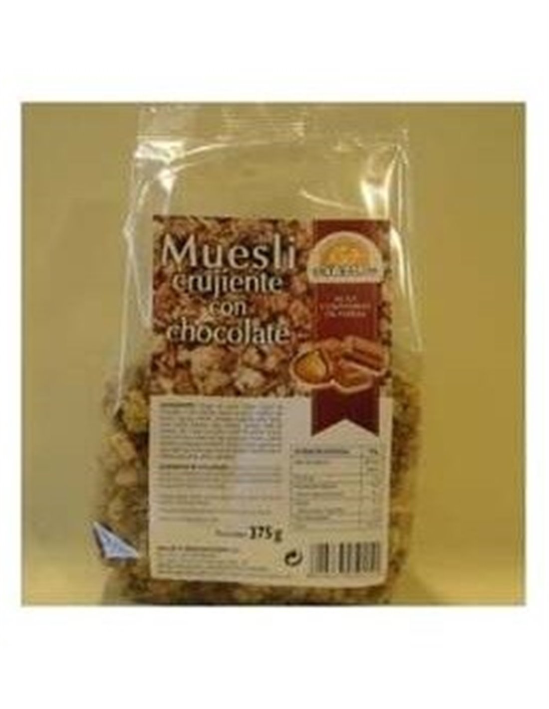 Copos de Avena (38%), Trozos de chocolate (12%) (Azúcar, Cacao en polvo, Manteca de cacao), Azúcar moreno, Cereales crujientes (8%) (Maíz, Arroz, Azúcar moreno, Trigo, Centeno, Cebada, Malta de cebada, Sal, Cacao en polvo), Aceite de girasol, Azúcar, Copos de coco, Copos de trigo, Copos de centeno, Nueces tostadas, Copos de almendras, Cacao en polvo, Germen de trigo, Miel, Sal, Chocolate en polvo (Azúcar, Cacao en polvo, Manteca de cacao, Sabor: vainilla).
